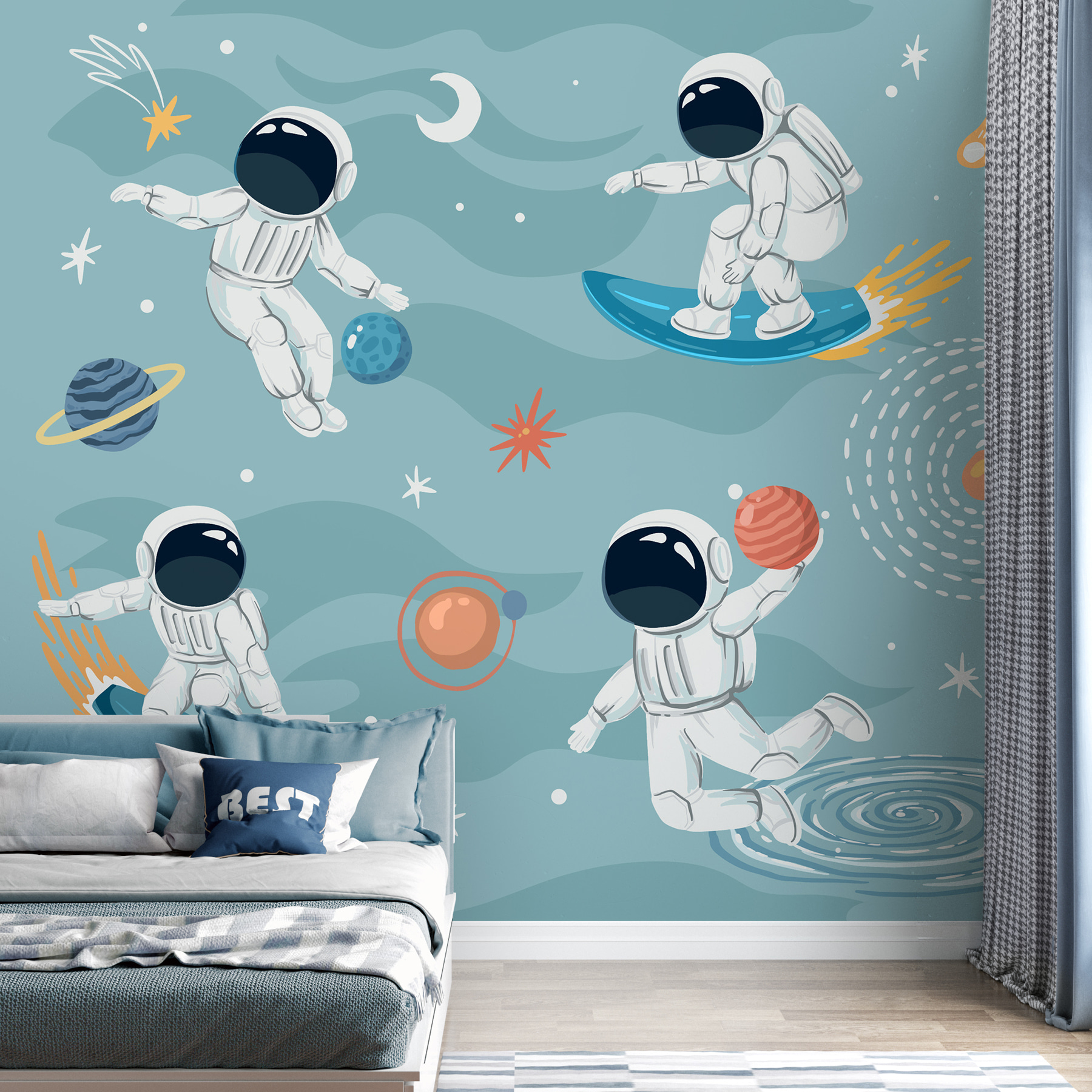 Imaginează-ți că transformi camera copilului tău într-un loc de joacă cosmic cu acest mural minunat. “Desenul animat al unui astronaut pe o placă de surf” vă poartă într-o călătorie nebună prin spațiu – este ca și cum ați lovi valurile galaxiei direct de pe peretele dvs. Perfect pentru a stârni imaginația unui copil sau pentru a adăuga o notă excentrică unei camere de joacă. Are toate elementele – planete, stele, chiar și un pic de acțiune cometă. Îți poți imagina poveștile de culcare? Visând la aventuri pe Calea Lactee, călărind stele căzătoare. Este plin de viață, distractiv și un pic ciudat – exact așa cum ar trebui să fie copilăria. Face ca orice spațiu să pară cosmic!