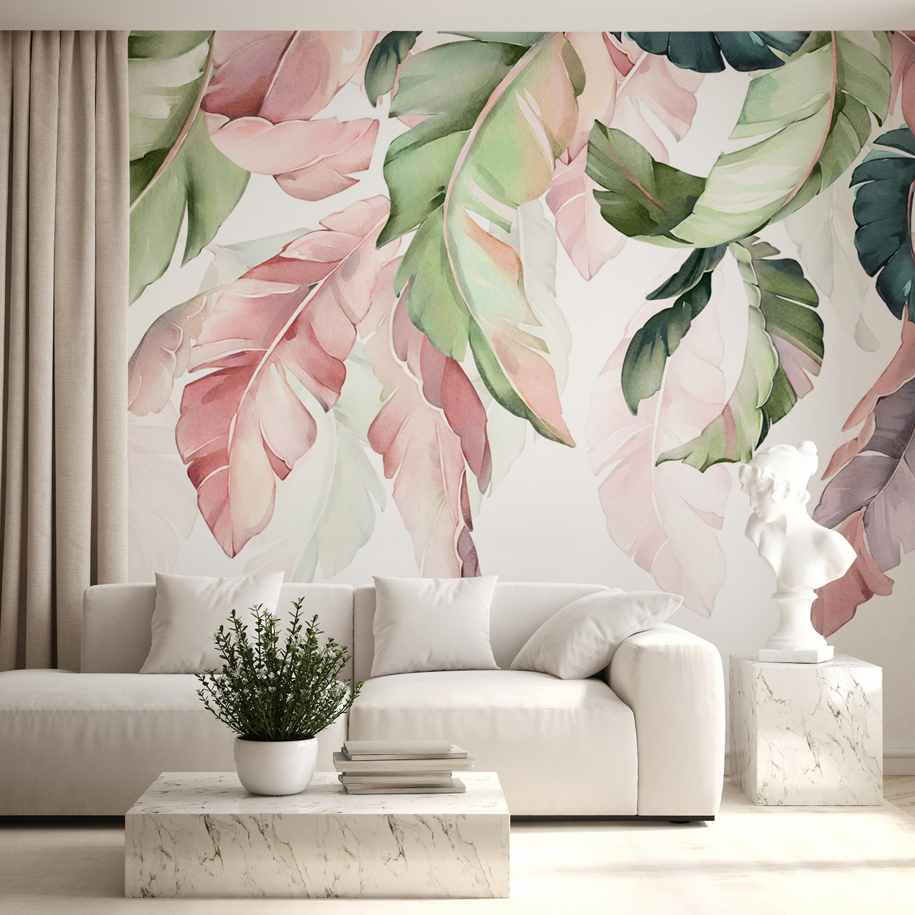 Transformați orice cameră într-o escapadă cu frunze cu această pictură murală uimitoare cu frunze colorate care formează un baldachin grațios. Imaginați-vă că pășiți în spațiul dvs. și simțiți că ați fost transportat într-o pădure senină. Nuanțele blânde de verde, roz și modelele moi nu doar decorează peretele – ele invită la o atmosferă jucăușă, dar liniștitoare, perfectă pentru nopți confortabile sau dimineți vesele. Fie că este o piesă centrală pentru camera de zi sau un fundal pentru discuțiile de acasă, această pictură murală adaugă o notă de eleganță a naturii fără a fi nevoie de o grădină. Iubitorii de natură vor aprecia cu siguranță vibrația, ca să nu mai vorbim de faptul că servește ca un starter de conversație fantastic. Nu este nevoie de degetul verde!