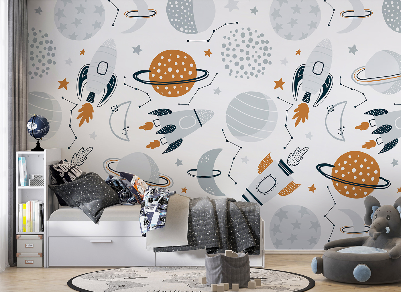 Părinții o iubesc pentru că stârnește curiozitatea față de univers, iar copiii o adoră pentru vibrația sa jucăușă. În plus, este ușor de aplicat, ceea ce o face o alegere excelentă pentru o transformare rapidă a camerei. Cufundă-te în acest decor încântător – este din altă lume!