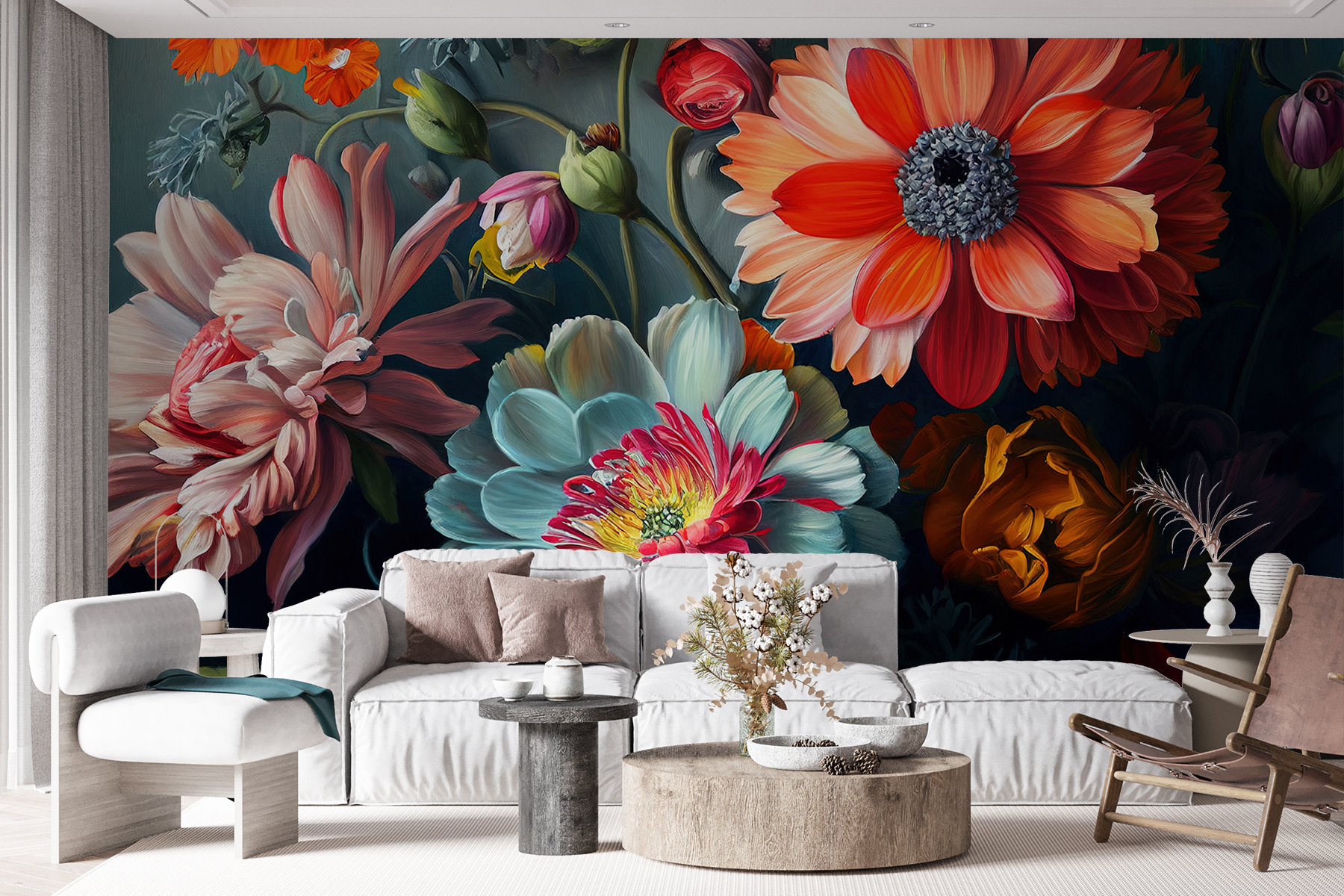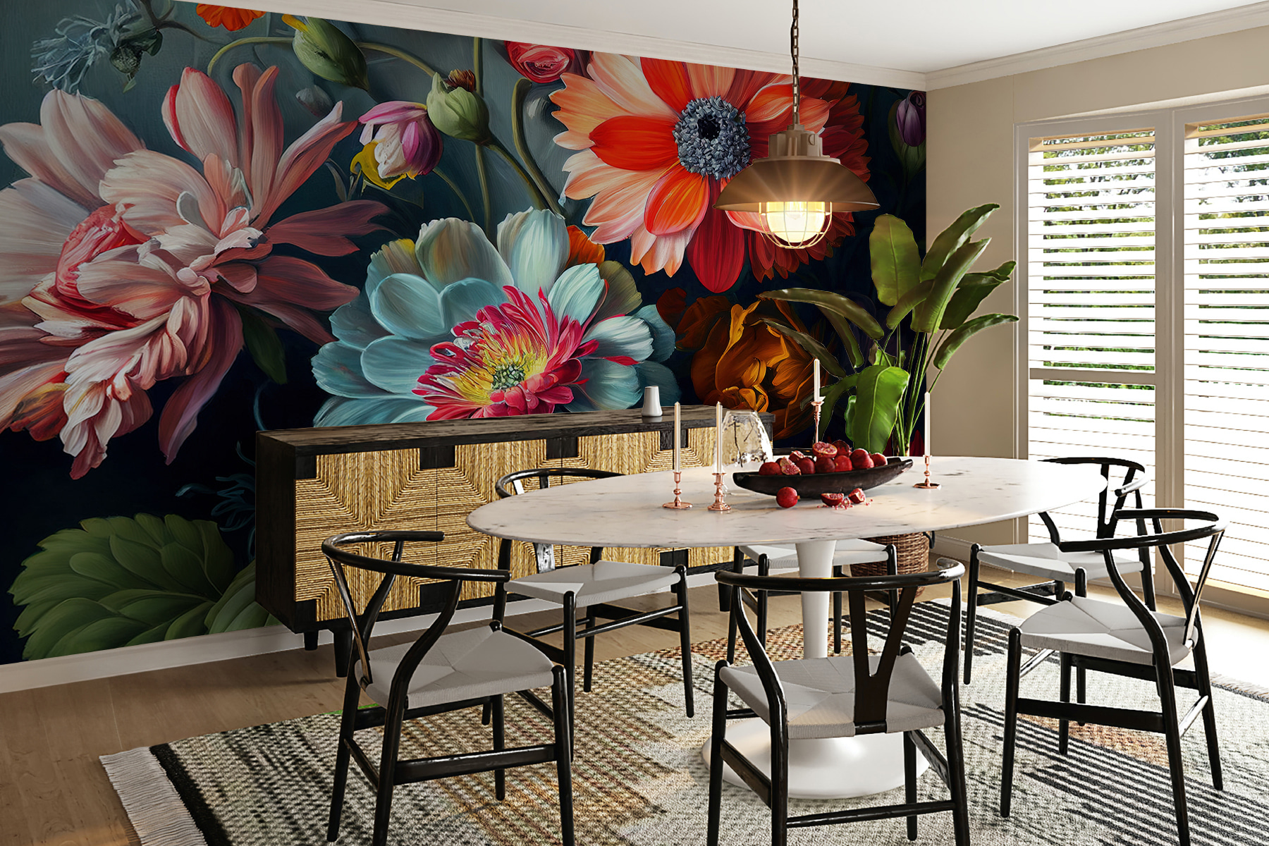 Imaginați-vă că intrați într-o cameră în care florile vibrante vă sar în ochi, practic cerând atenție. Această pictură murală, cu amestecul său jucăuș de culori și texturi, transformă orice spațiu într-un refugiu plin de viață în grădină. Imaginați-vă un colțișor confortabil, plin de lumina soarelui, în care această expoziție uimitoare vă atrage înăuntru, stârnind bucurie și un pic de fantezie. Prietenii vă vor întreba dacă aveți o grădină secretă! Este perfect pentru a lumina un perete plictisitor sau pentru a adăuga un strop de personalitate unui apartament șic. De ce să nu îmbrățișezi aceste vibrații florale și să îți lași pereții să înflorească?