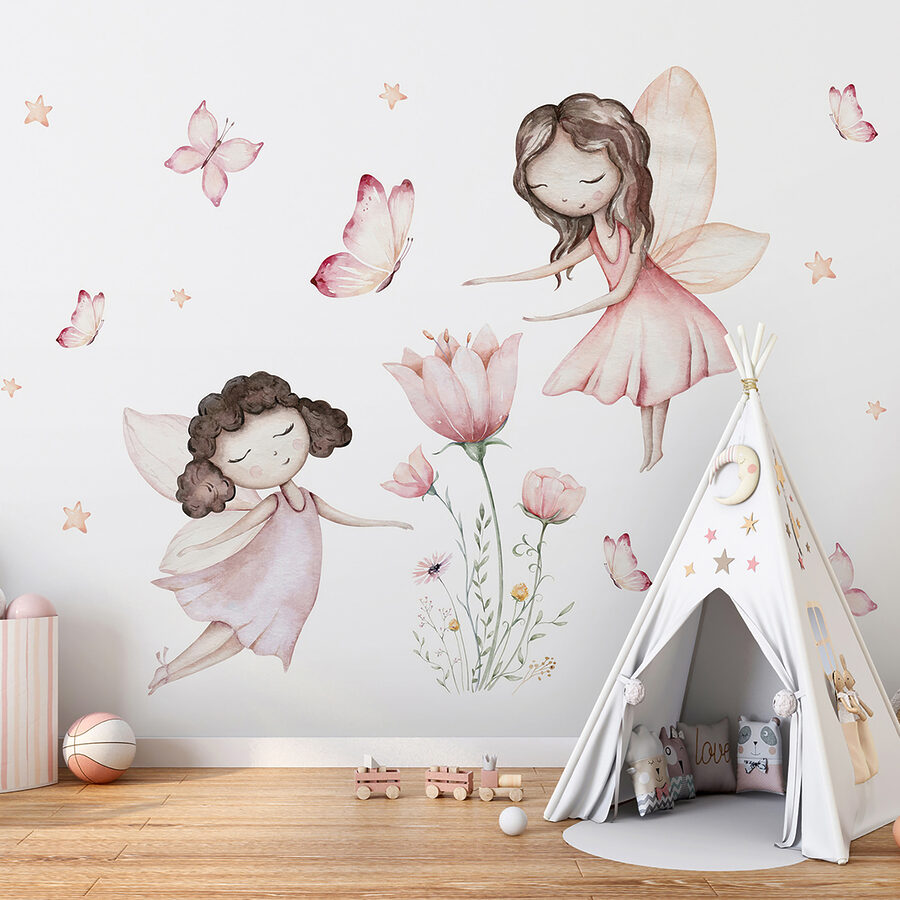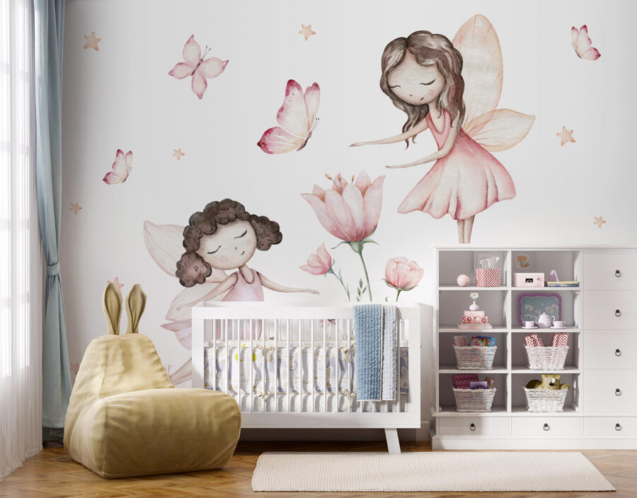 Intrați într-un basm cu muralul de perete “Zânele dansează printre flori”. Perfectă pentru transformarea camerei celui mic, această pictură murală încântătoare prezintă zâne delicate care zburdă printre flori înflorite și fluturi blânzi. Imaginați-vă doar poveștile de culcare și visele cu ochii deschiși pe care le va inspira această scenă capricioasă. Pastelurile blânde și detaliile fermecătoare creează o atmosferă senină și magică – este fericire pură. Fie că este vorba de o cameră pentru copii, o cameră de joacă sau un colț confortabil pentru fiica ta, această pictură murală aduce un strop de magie și minune. Ușor de aplicat și și mai ușor de adorat, este o modalitate încântătoare de a face orice spațiu să se simtă special.