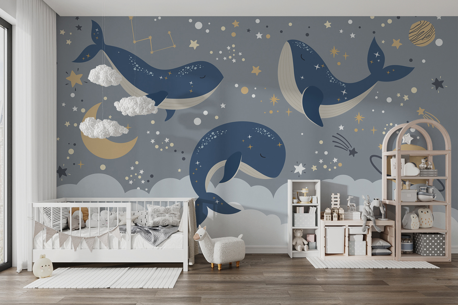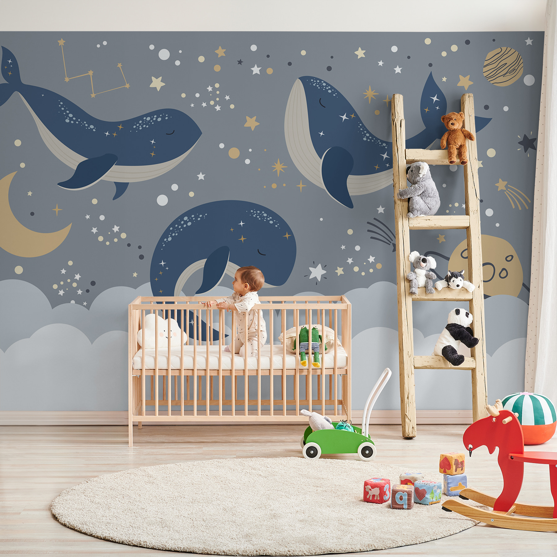 Căutați să adăugați un strop de uimire în camera copilului dumneavoastră? Aruncați o privire la acest visător “Fototapet Blue Whale with White Tail and Stars!” Imaginați-vă asta pe peretele copilului dvs. – este ca și cum ar fi propria lor bucată din cerul nopții, cu balene albastre drăgălașe plutind ușor printr-o mare de stele și constelații. Perfectă pentru grădinițe sau pentru spațiul oricărui mic aventurier, aceasta adaugă atingerea potrivită de magie și seninătate. În plus, aceste balene somnoroase par să promită vise plăcute pentru oricine doarme sub ele. Este capricios, liniștitor și un pic jucăuș – un fundal încântător pentru poveștile de culcare și somnul de după-amiază. Fie că este pentru fiul sau fiica dvs. sau pentru momentele de îmbrățișare cu bebelușul dvs., transformă orice perete într-o aventură liniștitoare, luminată de stele.