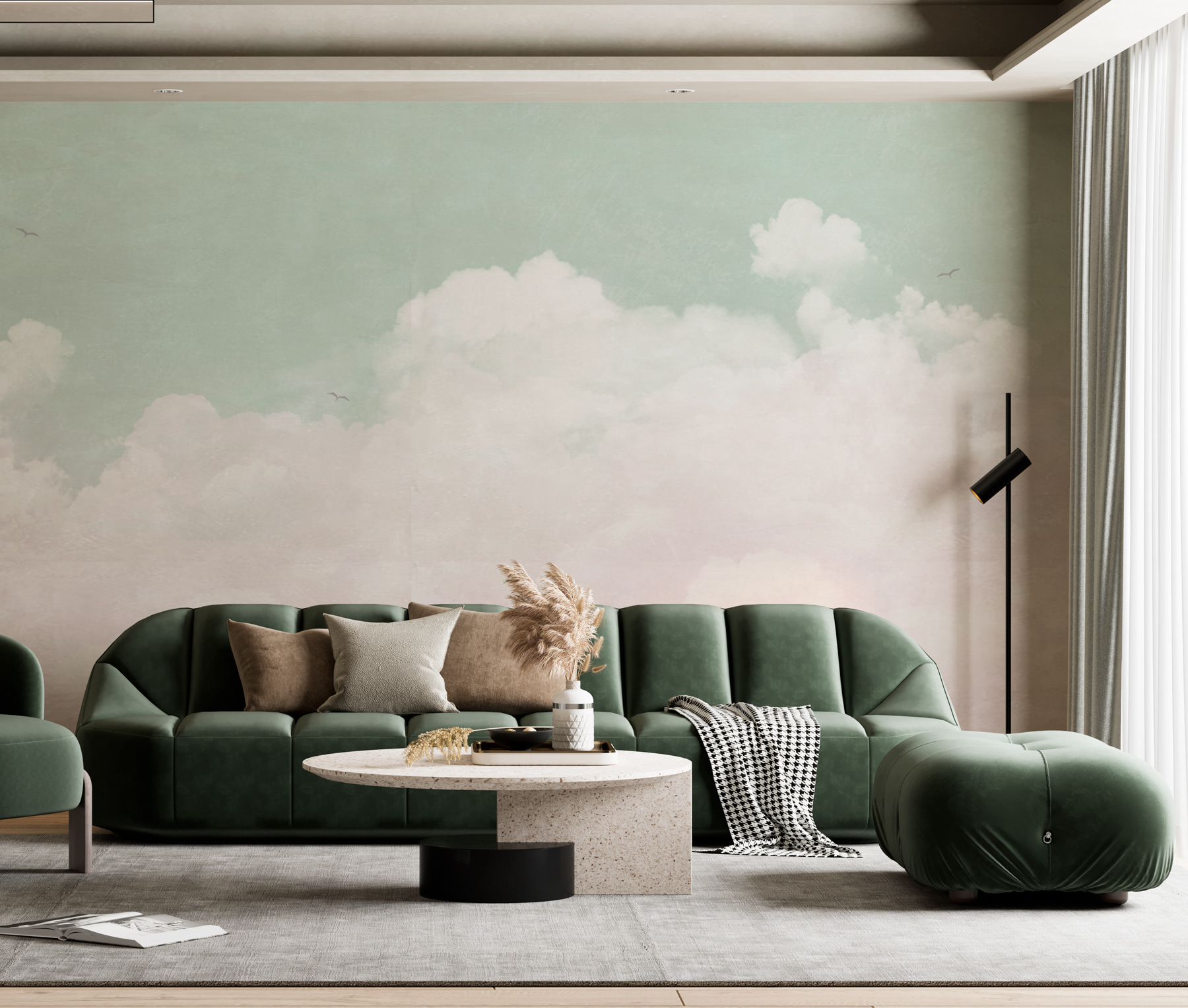 Imaginați-vă că vă relaxați cu o carte bună, cu lumina blândă care se filtrează ușor în timp ce admirați nuanțele suave. Nu este doar un decor; este un memento zilnic pentru a visa puțin și poate chiar pentru a planifica acea aventură spontană spre nori. Fie într-un colț confortabil sau într-un living spațios, această pictură murală face ca fiecare privire să fie ca o gură de aer proaspăt.