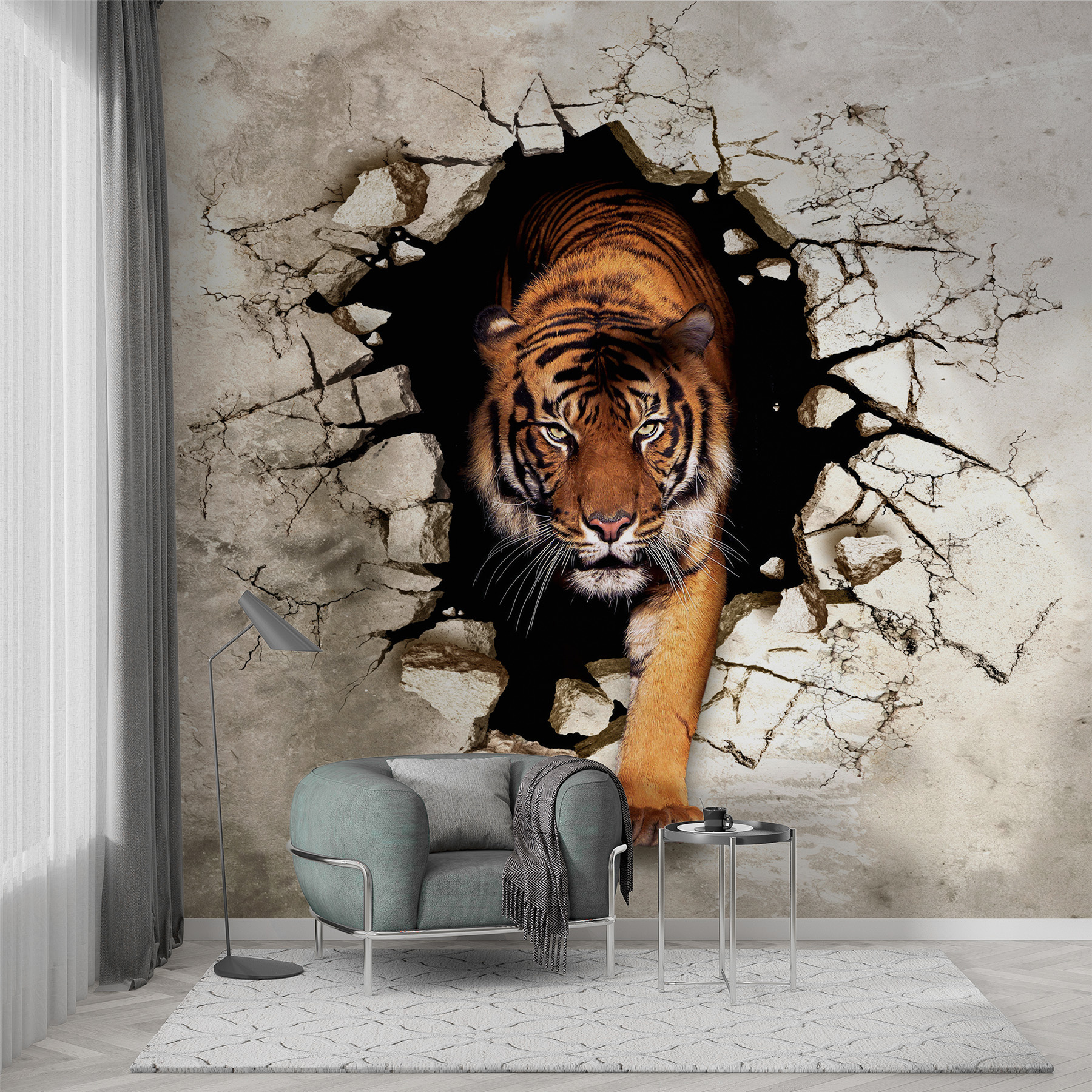 V-ați gândit vreodată să aveți un tigru feroce care se prăbușește prin peretele dvs.? Această pictură murală uimitoare a unui tigru care iese printr-un perete crăpat este perfectă dacă vă place un decor sălbatic! Imaginați-vă acest lucru: intrați în sufragerie și iată-l, un tigru iese la iveală cu acea privire intensă, captivantă. Este ca și cum ai avea o bucată de junglă chiar în casa ta, străpungând betonul. Este dramatic, atrage privirile și, sincer, este destul de palpitant. Cine nu vrea un pic de aventură în spațiul său? În plus, stârnește conversații – oaspeții tăi nu se vor opri să vorbească despre asta! Adăugați un pic de zgomot decorului camerei dvs. cu această pictură murală 3D fascinantă. Credeți-mă, vă va plăcea declarația îndrăzneață pe care o face!
