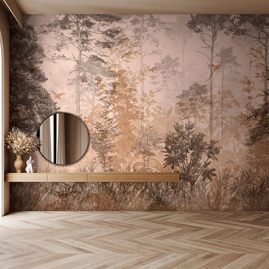 Imaginează-ți că dai spațiului tău o notă de magie senină cu acest mural “Pădure senină cu nuanțe blânde”. Este ca și cum te-ai transporta direct într-o pădure liniștită, chiar din camera ta de zi. Această frumusețe se încadrează în categoriile Foliage, Jungle Tree, Tropical și toate celelalte categorii minunate inspirate din natură – serios, este o adevărată vedetă.