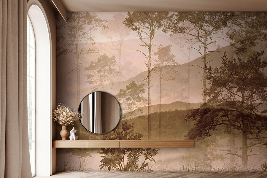 Imaginați-vă că aveți liniștea unei păduri cețoase chiar în sufrageria dvs. – sună de vis, nu? Această pictură murală “Misty Forest with Distant Mountains” face exact asta. Este ca și cum ai păși într-o șoaptă blândă a naturii de fiecare dată când treci pe lângă ea. Copacii înalți care se pierd în ceață creează o atmosferă liniștitoare, aproape ca și cum ai simți o briză răcoroasă și parfumul pământesc al pădurii.