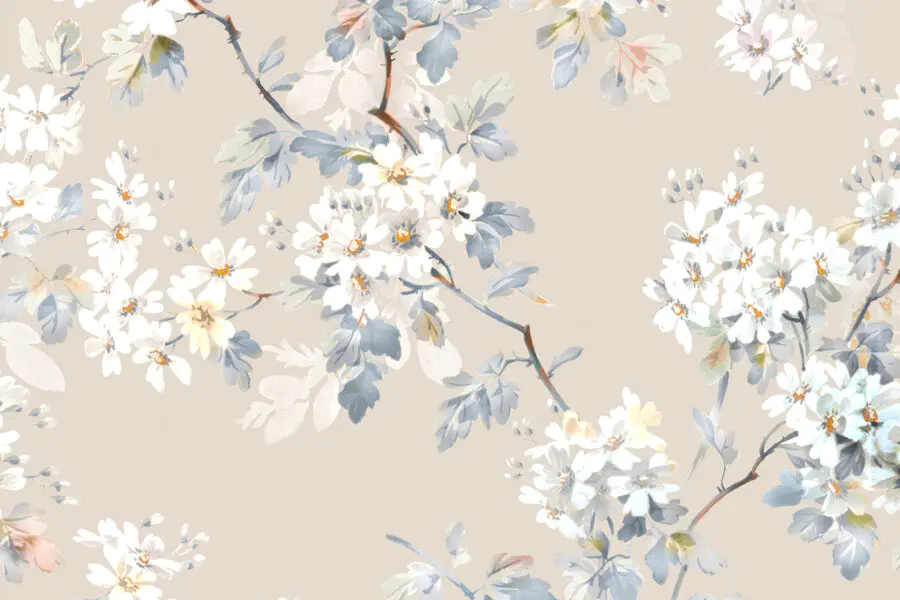 Aveți un perete gol care își dorește personalitate? Salutați această pictură murală florală delicată! Este vorba despre aducerea calmului și frumuseții naturii în interior. Imaginați-vă flori și frunze moi, pastelate, dansând grațios pe un fundal bej blând. Este ca o plimbare liniștită printr-o grădină înflorită – fără să vă murdăriți pantofii!