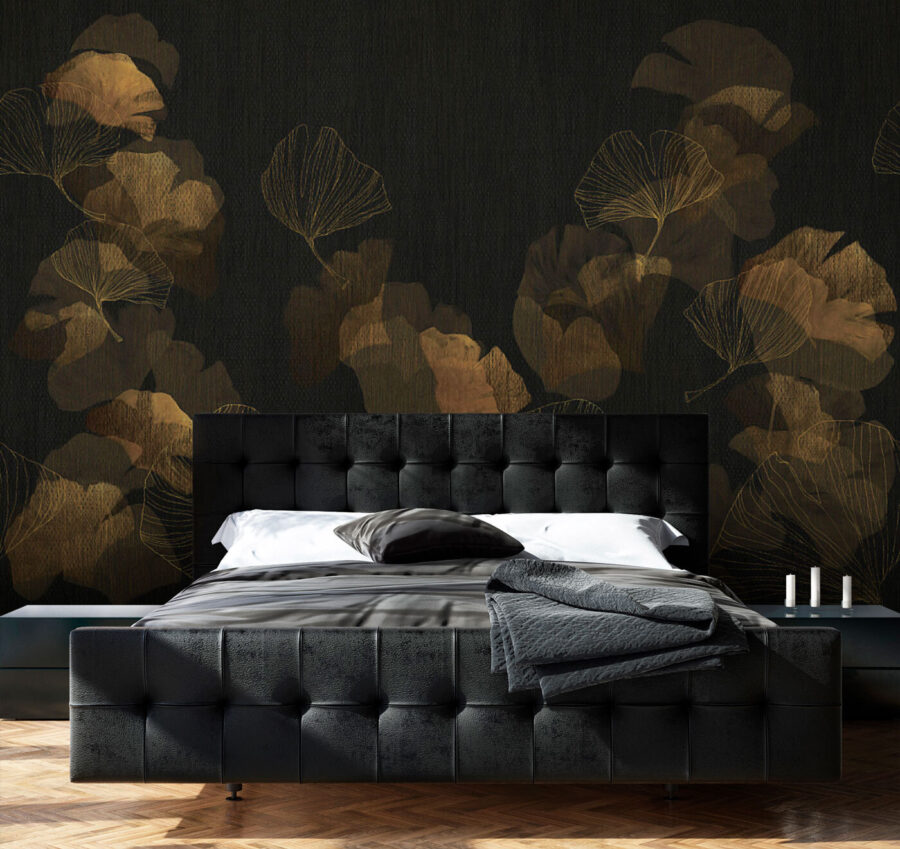 Transformați-vă spațiul cu această pictură murală uimitoare cu frunze delicate pe un fundal închis. Imaginați-vă intrând într-o cameră în care natura întâlnește eleganța, învăluindu-vă într-o îmbrățișare confortabilă. Aceasta adaugă o notă chic fără efort, făcând pereții să prindă viață fără a copleși simțurile.