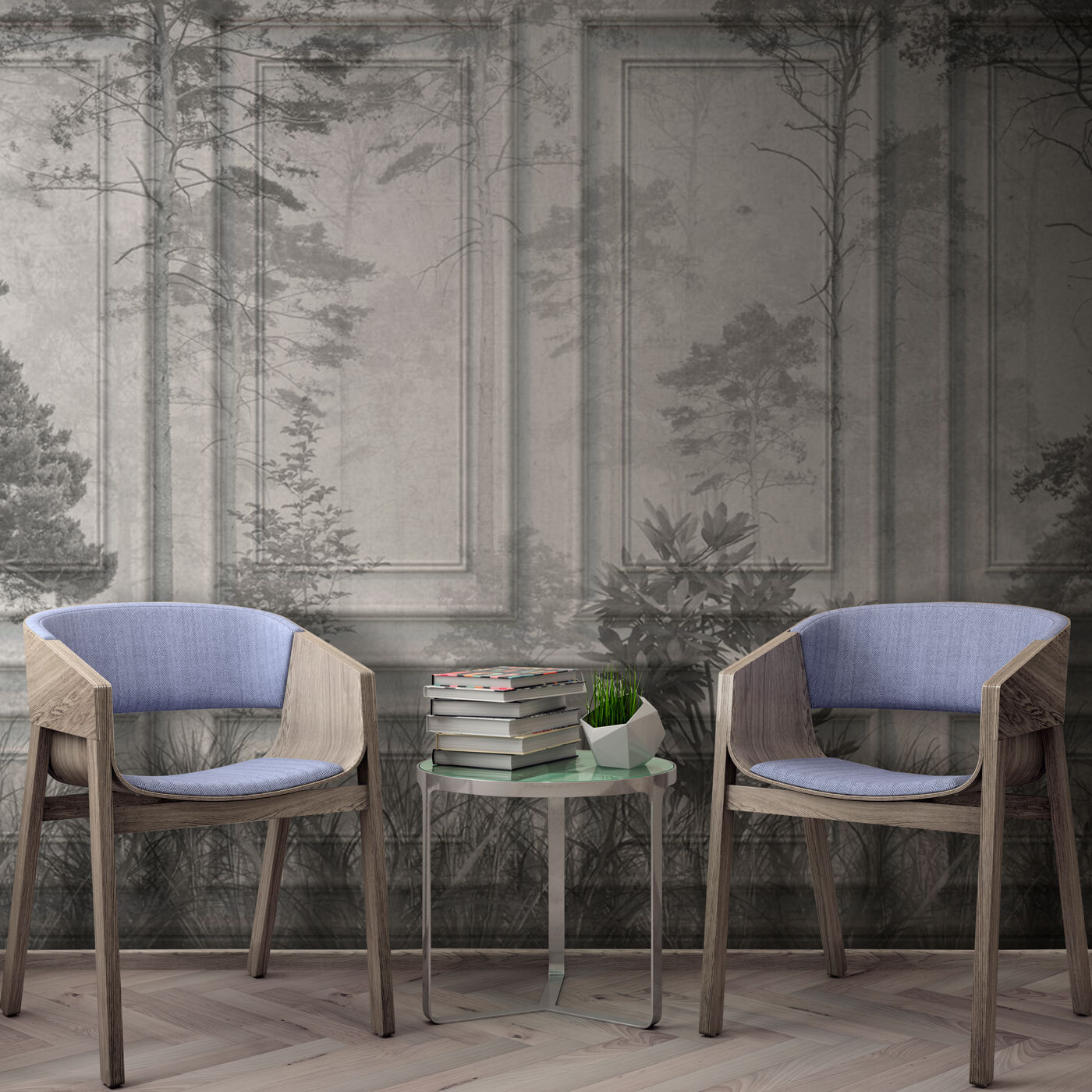 Imaginați-vă că pășiți într-o cameră în care natura se împrietenește cu arhitectura clasică. Asta este ceea ce face această pictură murală – este ca și cum ai aduce o scenă de pădure senină într-o bibliotecă elegantă. Tonurile atenuate se îmbină atât de ușor, ca și cum ai cădea într-un roman atemporal într-o zi ploioasă. Există acest efect calmant – perfect pentru un colț de lectură sau o cameră de zi în care vrei doar să respiri ușor. Textura cu efect boiserie? Oh, adaugă acest fler sofisticat, făcând ca spațiul tău să fie elegant, dar în același timp primitor. Oaspeții vor fi impresionați, dar, mai important, vă veți simți ca și cum ați avea o felie de liniște chiar la dvs. acasă.