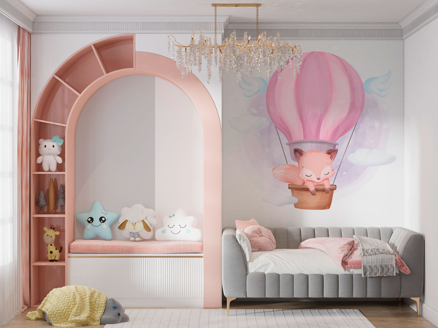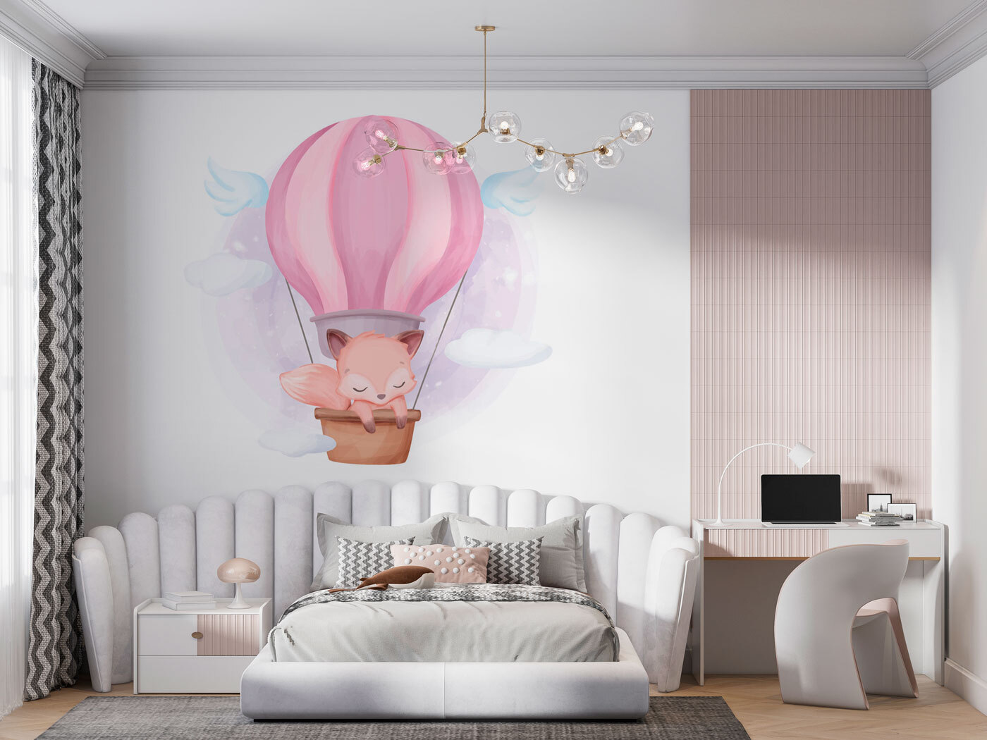 Imaginați-vă că plutiți în țara viselor pe un nor pufos, cu un balon roz cu aer cald care să vă ducă acolo! Această pictură murală “Balon roz cu aer cald” este perfectă pentru camera unui copil – fie că este pentru fiul dvs. aventurier sau pentru fiica dvs. mică și visătoare. Culorile pastelate visătoare și adorabila vulpe somnoroasă fac ca această pictură murală să se simtă ca o îmbrățișare caldă. Adaugă atingerea potrivită de fantezie și magie oricărui spațiu.