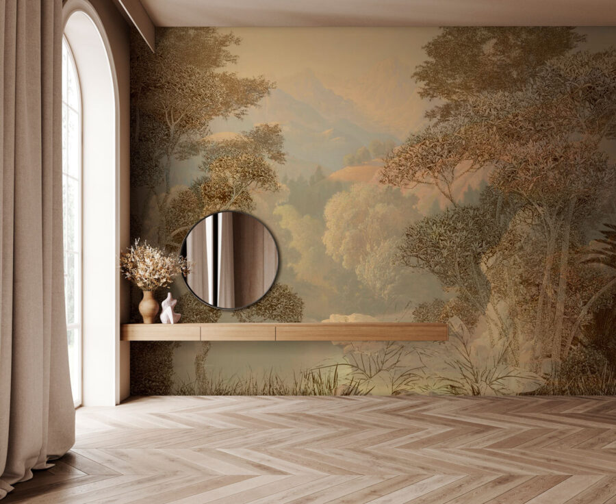Imaginează-ți asta pe peretele tău: “Copac în fața unui munte”, o pictură murală care șoptește seninătate în spațiul tău. Cu frunzișul său luxuriant și fundalul maiestuos, este ca și cum ai avea o fereastră care se deschide direct în calmul însuși. Aproape că simțiți briza de munte? Perfectă pentru iubitorii de natură sau pentru oricine dorește să scape de agitație, această piesă se potrivește fără efort cu vibrațiile tropicale sau cu o temă relaxată de junglă. Prietenii s-ar putea chiar să privească de două ori, crezând că v-ați mutat într-un paradis ascuns. Se potrivește bine cu un colț de lectură confortabil sau cu un colț de meditație. Văzând acest lucru în fiecare zi, diminețile tale ar putea fi mai liniștite, iar serile puțin mai relaxate. Și tuturor ne-ar prinde bine un pic mai mult din asta, nu-i așa?