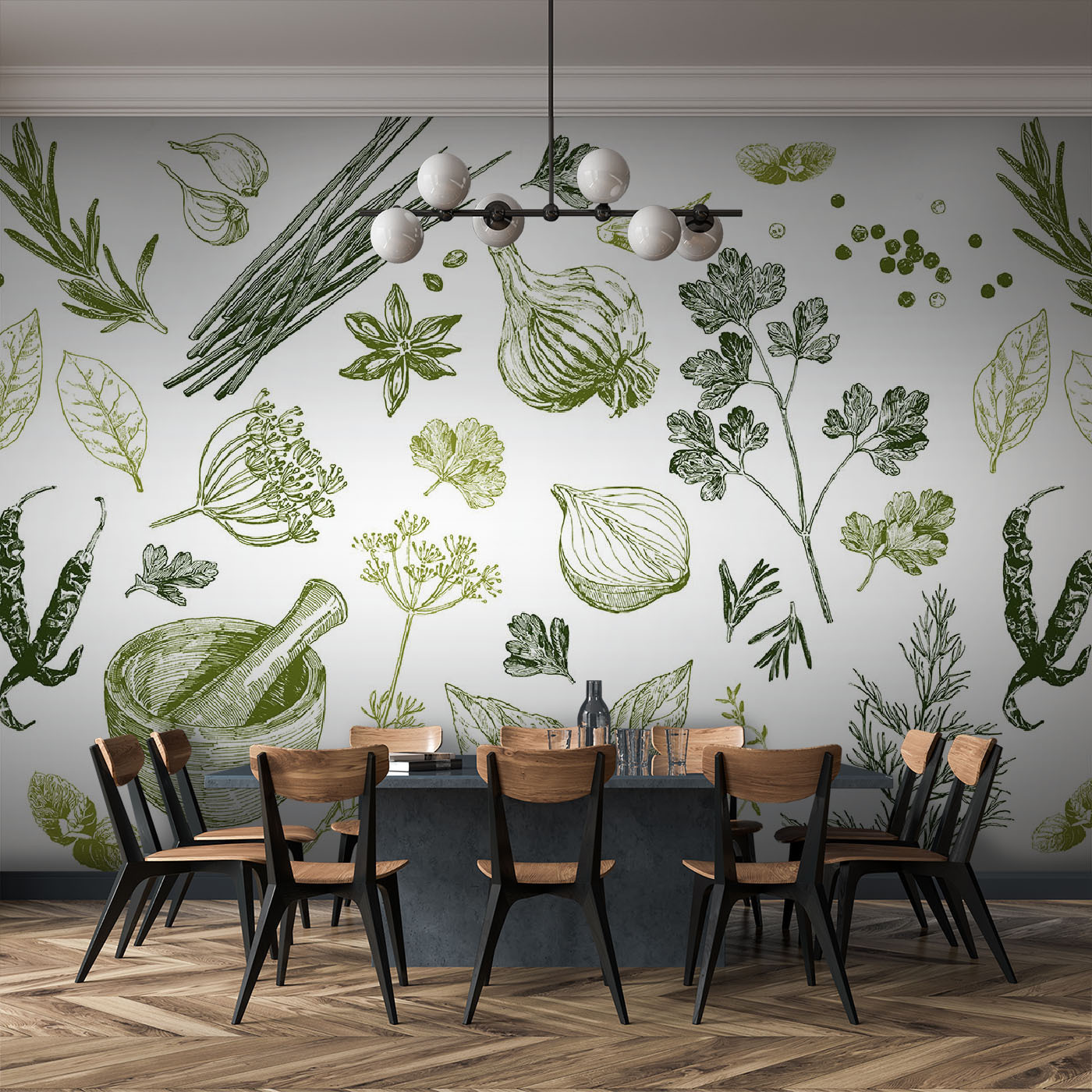 Transformați orice spațiu culinar într-un paradis parfumat cu această pictură murală încântătoare care prezintă un sortiment viu de ierburi și condimente. Imaginați-vă verdele vibrant și tonurile pământii dansând pe pereții dvs., făcând fiecare masă să pară un pic mai magică. Este ca și cum ai avea o mini-grădină chiar în bucătăria ta, aproape că te tentează să prepari niște pesto sau să pregătești o salată proaspătă. În plus, cui nu-i place să înceapă o conversație? Oaspeții vor fi atrași, întrebând despre acele imprimeuri unice. Atârnă-l într-un colț confortabil și privește cum aduce căldură și inspirație, transformând timpul de gătit într-o bucurie pură. Condimentează-ți decorul!