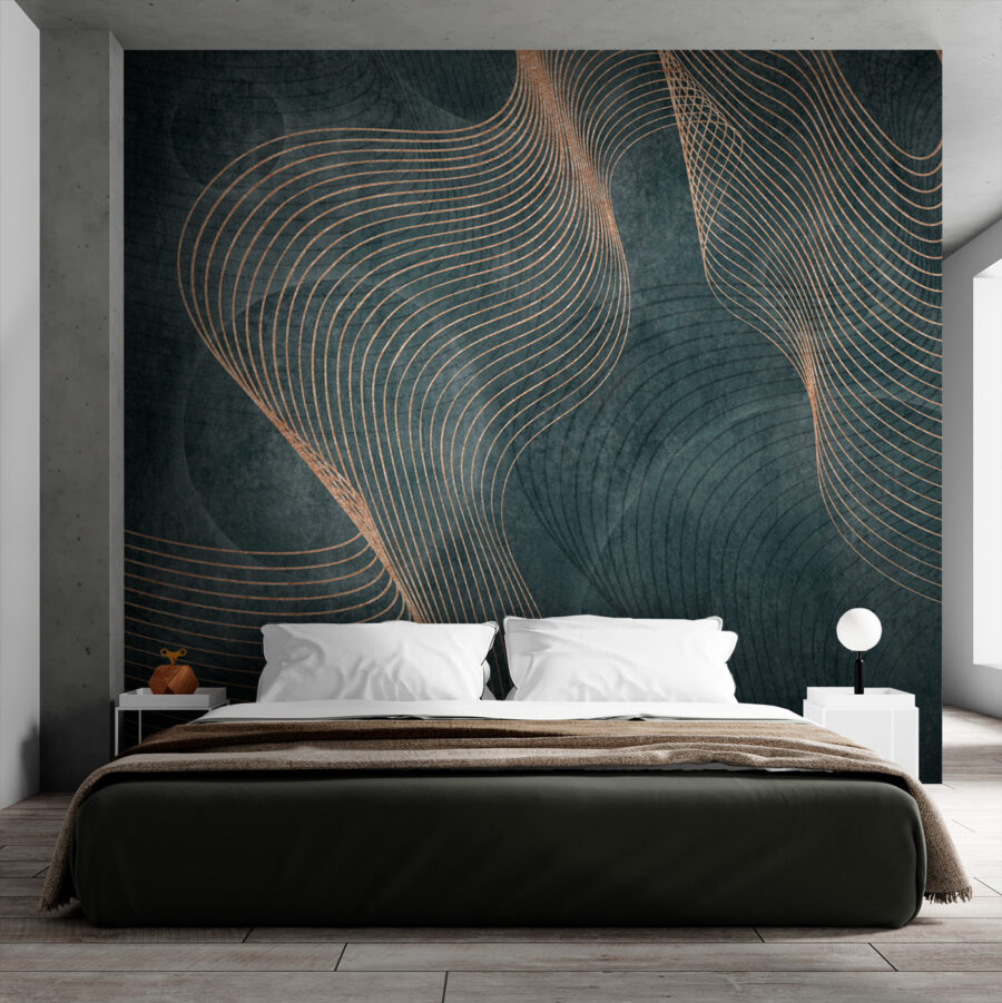 Transformați un perete simplu într-o capodoperă cu această pictură murală captivantă. Imaginați-vă valuri abstracte dansând pe un fundal întunecat, creând o atmosferă care este atât liniștitoare, cât și intrigantă. Este ca și cum ai aduce o operă de artă modernă chiar în casa ta, stârnind conversații cu cei care te vizitează. Imaginați-vă seri confortabile petrecute privind curbele blânde, pierdute în gânduri sau visând cu ochii deschiși la locuri îndepărtate. Această pictură murală nu este doar decor; este o stare de spirit, un sentiment care adaugă profunzime oricărei încăperi. Perfect pentru a face ca acel perete fad să pară dintr-o dată viu!