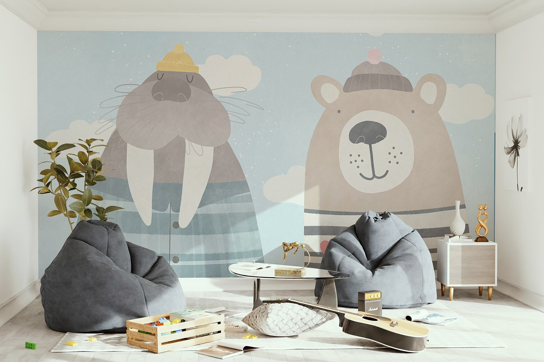 Uitați-vă la această pictură murală încântătoare! Prezentând o morsă fermecătoare cu pălărie și pantaloni scurți, este perfectă pentru a adăuga un strop de distracție și fantezie în camera unui copil. Nu vă puteți imagina? Imaginați-vă că ochii copiilor se vor lumina când își vor vedea noul prieten morsă stând cu niște păsări prietenoase. Este ca o mini aventură pe perete – perfectă pentru a stârni imaginația în timpul jocului sau al poveștilor înainte de culcare. În plus, culorile moi îl fac să se potrivească ușor cu aproape orice decor. Dulce, nu-i așa? Cu această pictură murală, fiecare zi se simte ca o zi blândă și însorită la malul mării.