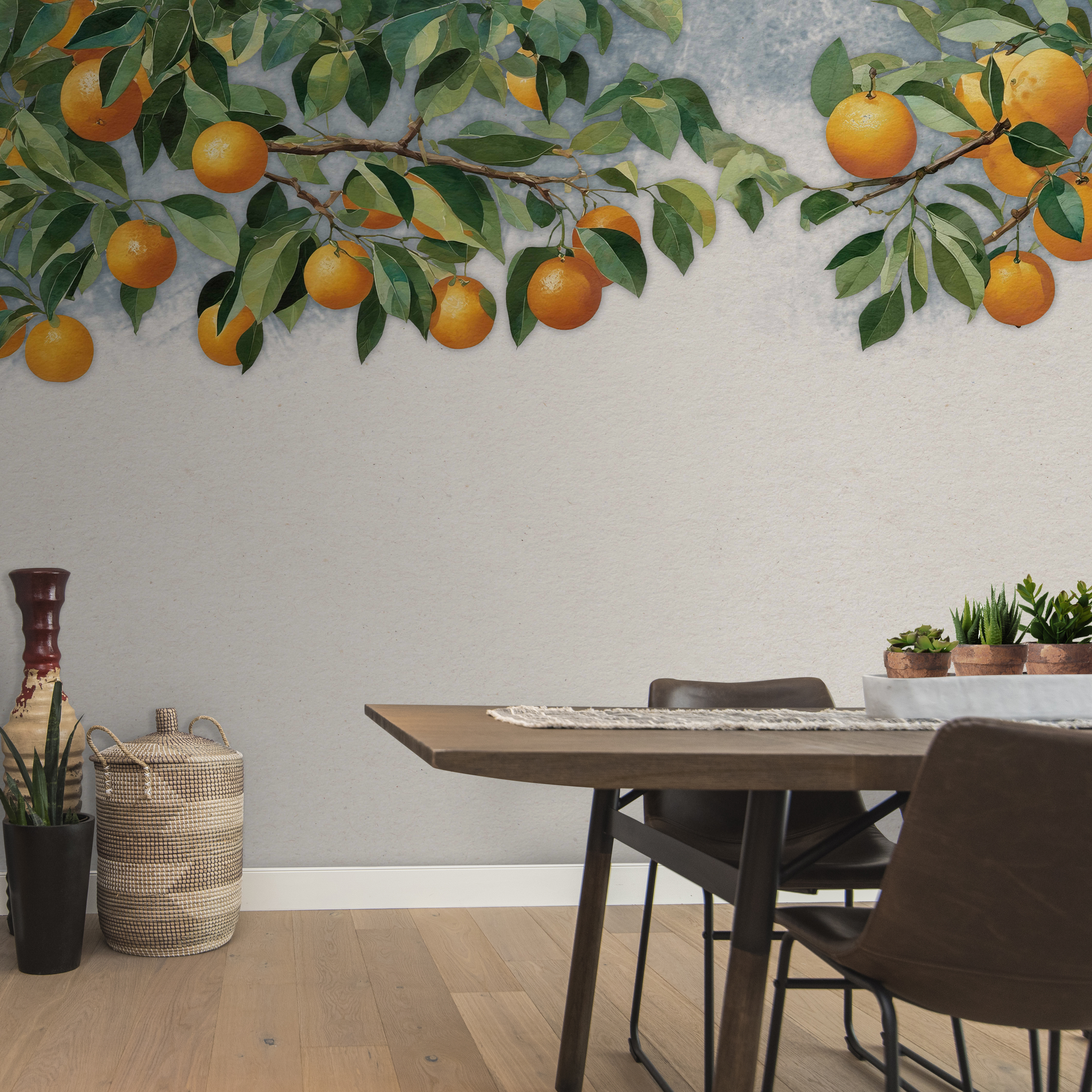 Înveseliți orice cameră cu această pictură murală fermecătoare cu portocale vesele atârnând de ramuri luxuriante. Este ca și cum ai păși într-o livadă însorită fără să ieși din casă. Imaginați-vă sorbindu-vă cafeaua de dimineață în fața acestui peisaj vibrant, simțind vibrațiile bune. Perfectă pentru o bucătărie sau un colț confortabil, aceasta adaugă fără efort o notă de culoare și căldură. Nuanțele apoase îi dau o notă de vis, făcând orice perete să se simtă viu. Cine are nevoie de o vacanță când poți aduce o felie de natură în interior? În plus, se potrivește cu orice stil de decor – vorbește despre versatilitate!