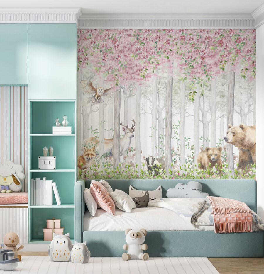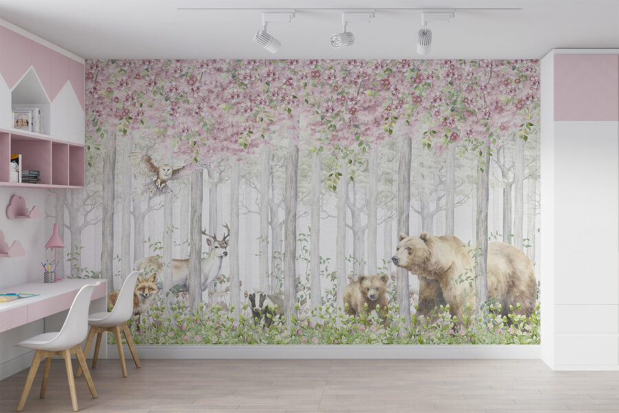 Aruncați o privire la această pictură murală încântătoare, “Acuarela unui urs”, care este perfectă pentru oricine iubește o atingere de magie în decorul său. Prezentând un urs confortabil înconjurat de prieteni din pădure și flori înflorite, aceasta aduce un farmec blând de pădure în orice cameră. Imaginați-vă că intrați în spațiul dvs. de locuit și simțiți că pășiți într-o pădure senină, fermecată. Este ca o îmbrățișare din partea naturii!