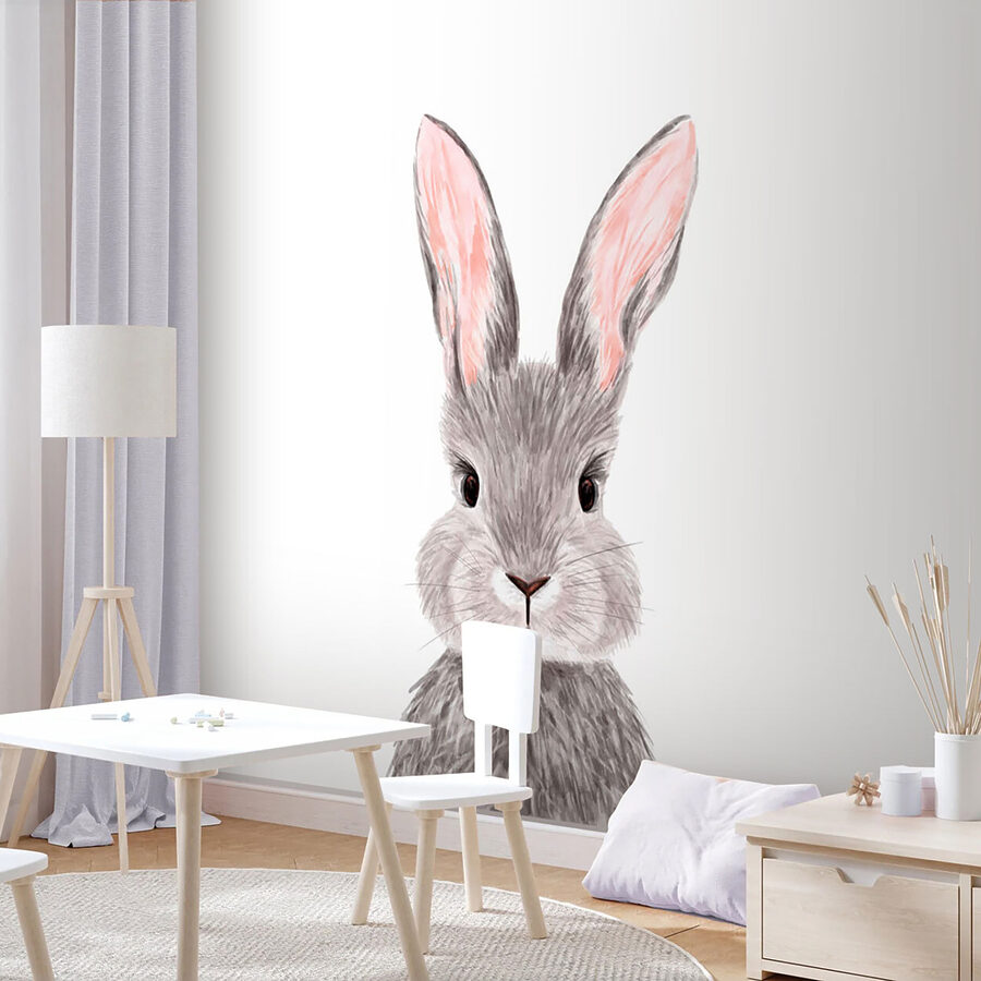 Simplitatea designului său îi permite să se potrivească cu diferite decoruri, dar totuși iese în evidență ca vedetă a camerei. Este uimitor cum un mic strop de iepuraș poate transforma un perete banal în ceva magic, nu-i așa? Deci, dacă doriți un strop de încântare și un strop de adorabilitate, această pictură murală este soluția ideală. Este mai mult decât un decor – este un zâmbet care așteaptă să apară în fiecare zi.