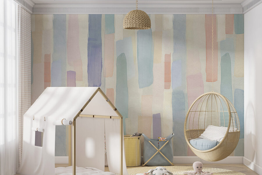 Imaginează-ți asta: intri în sufragerie și, în loc de vopseaua veche și plictisitoare, ești întâmpinat cu dungi de acuarelă pastelate, de vis. Este ca și cum cineva a luat o dimineață blândă și cețoasă și a stropit-o direct pe peretele tău. Vorbim despre o îmbunătățire instantanee a dispoziției! Este plină de viață, dar liniștită, ca și cum ai avea o briză șoptitoare în interior. Culorile se îmbină atât de natural, ceea ce o face perfectă pentru un colț de lectură confortabil sau chiar pentru spațiul tău de lucru creativ. Această pictură murală are acea eleganță fără efort și o șoaptă de fantezie. Este ușor de privit și emană acea vibrație dulce și relaxată pe care o dorim cu toții. Perfect pentru a transforma orice spațiu în paradisul tău personal pastelat!