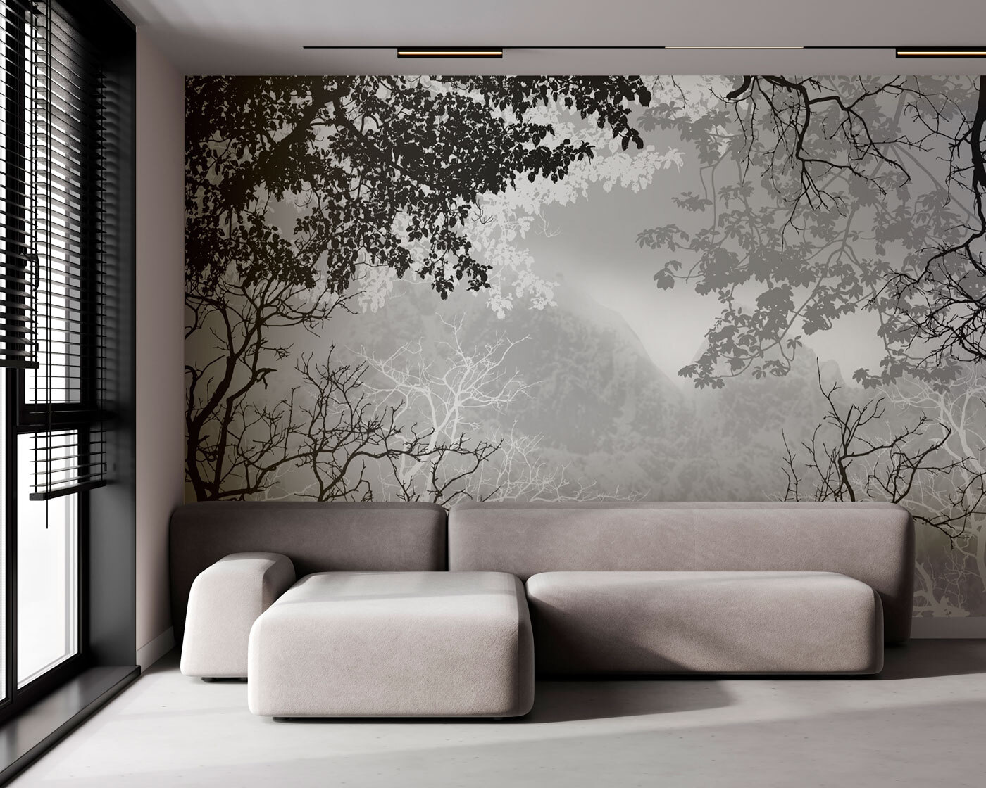 Imaginați-vă că stați în sufrageria dvs., cu o ceașcă de ceai în mână, în timp ce priviți această pictură murală liniștită cu ramuri de copaci și un fundal de munte cețos. Este ca și cum ai aduce un colț senin al unei păduri cețoase chiar în spațiul tău. Aproape că vă așteptați să auziți ciripitul păsărilor și vântul foșnind frunzele. Amestecul unic de munți și copaci al acestei picturi murale creează un efect calmant, dar dramatic – perfect pentru iubitorii de natură sau pentru oricine dorește o atingere a naturii sălbatice. În plus, este realizată în alb și negru, ceea ce îi conferă un aer clasic și atemporal, fără a suprasolicita decorul existent. Așadar, fie că lucrați de acasă, fie că vă relaxați într-o duminică leneșă, această pictură murală vă învăluie în îmbrățișarea naturii – cu excepția insectelor.