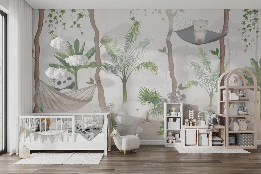 Imaginați-vă că intrați într-o cameră cu această pictură murală adorabilă, “Desenul animat al unui urs pe hamac”. Este ca și cum ai păși într-o pădure capricioasă, în care animale prietenoase se relaxează în modul zen total. Există un panda care se balansează pe un hamac, cu o atmosferă relaxată, un elefant care explorează vegetația luxuriantă și o girafă care este pur și simplu prea fermecătoare pentru cuvinte. Perfect pentru camerele copiilor, fie că este vorba de fiice care visează la basme sau fii care iubesc o aventură bună. Este mai mult decât o simplă acoperire de perete; este o felie de viață din pădurea fermecată care va face ca poveștile de culcare să prindă viață. Atât de drăguț, încât s-ar putea să te facă chiar să vrei să iei un hamac și să te alături distracției. Cui nu i-ar plăcea un urs cu obiective de relaxare supreme, nu-i așa?