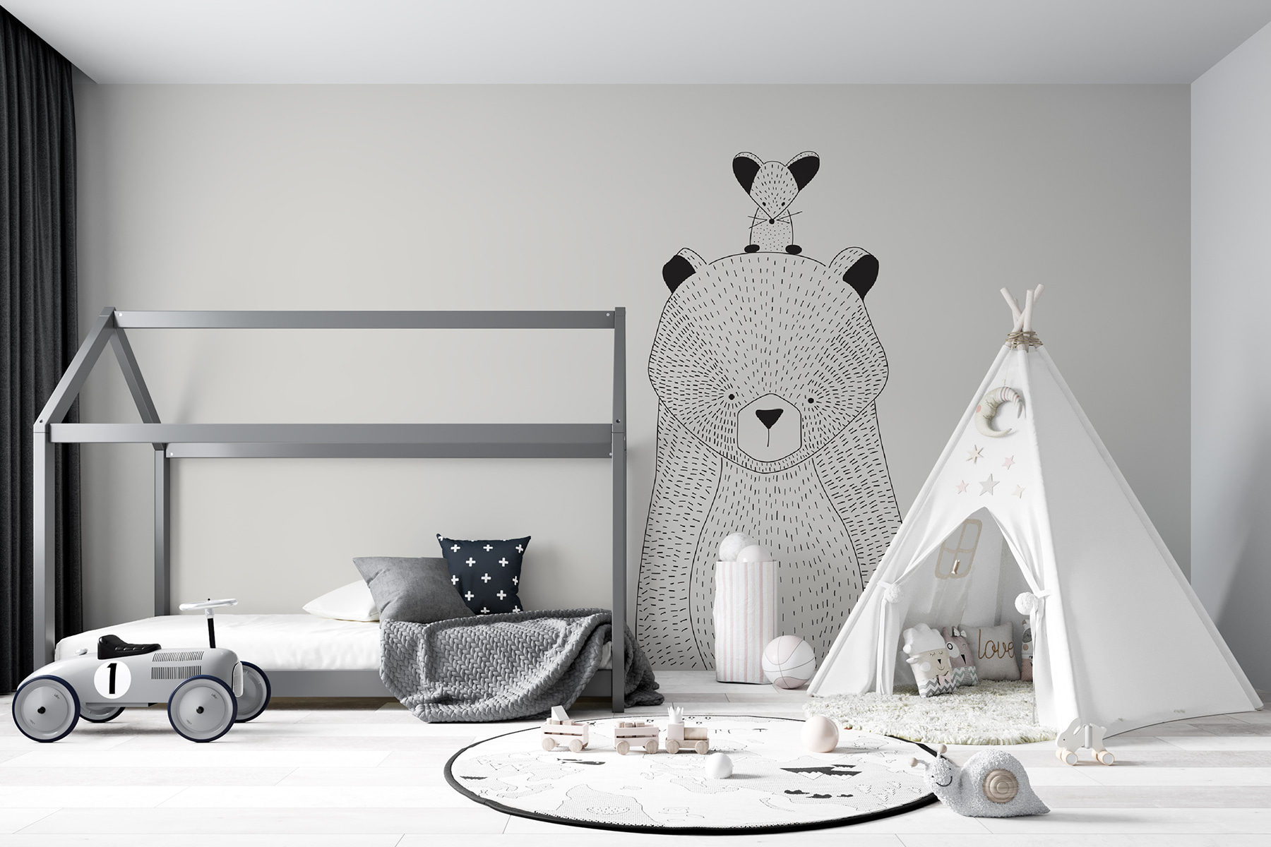 Aruncați o privire la această pictură murală fermecătoare a unui urs capricios – perfectă pentru a aduce o atingere de vibrații confortabile și jucăușe în camera oricărui copil! Imaginați-vă chicotelile încântate când micuțul dvs. zărește acest urs prietenos la prima oră a dimineții. Este ca și cum ai avea un prieten din pădure chiar acolo, în camera ta de copii sau de joacă.