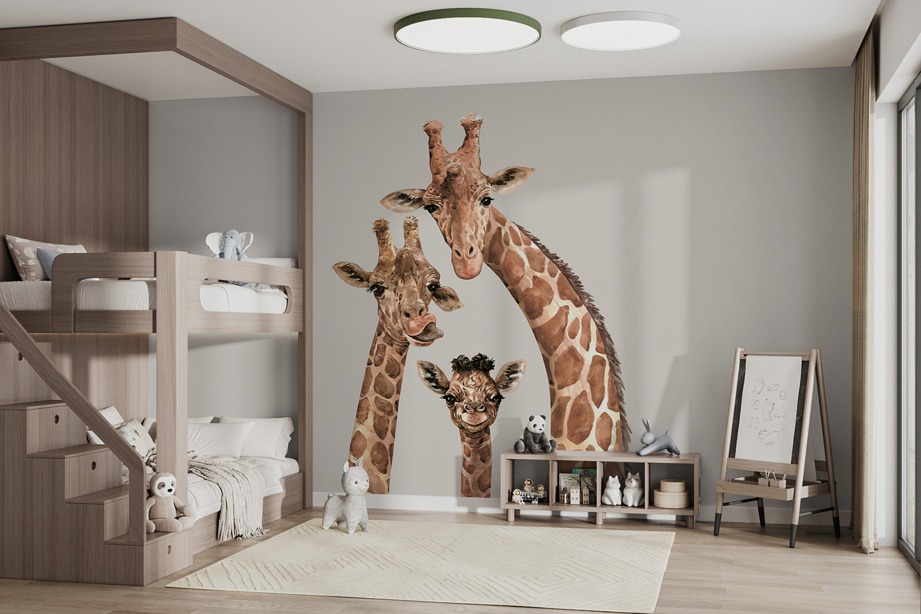 Iată un pic de distracție și fantezie pentru pereții dvs. – “Picturile noastre murale Grupul de girafe cu capetele împreună” vor adăuga un strop de personalitate oricărei camere. Uitați-vă doar la aceste fețe adorabile și curioase! Fie că amenajați dormitorul unui copil sau pur și simplu vă place un pic de decor jucăuș, aceste girafe vă vor face cu siguranță să zâmbiți de fiecare dată când le veți vedea.