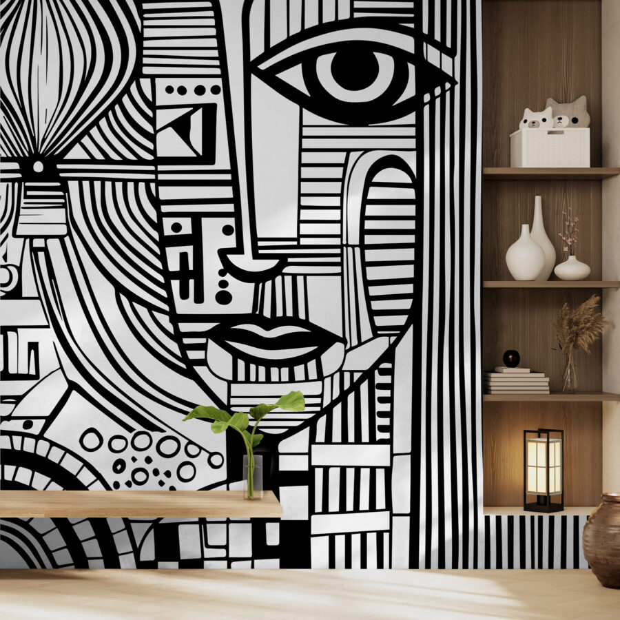 Te gândești să dai peretelui tău câteva puncte serioase de stil? Priviți această pictură murală alb-negru – este ca și cum arta a întâlnit eleganța și a creat această imagine uimitoare. Aceasta prezintă chipul unei femei într-un desen abstract modern, îndrăzneț și complicat în același timp. Imaginați-vă că ajungeți acasă și vedeți acest lucru pe perete – un adevărat spectacol, nu-i așa? Este o combinație de monocromie clasică și design avântat. Perfect pentru cei care doresc să injecteze un pic de “wow” în spațiul lor. Fie că este vorba de camera de zi, dormitor sau chiar birou, această pictură murală poate transforma orice loc într-un paradis artistic. Serios, nu este doar tapet, este o piesă centrală, o sursă de conversație. Liniile și formele detaliate vă pot chiar invita să găsiți aspecte noi de fiecare dată când vă uitați la el. Este genul de decor care îi face pe oaspeți să spună: “De unde ai luat asta?!” Ideal pentru a crea un fundal cu un stil unic, fără a copleși totul altceva. Deci, de ce să vă mulțumiți cu pereți simpli când puteți avea o capodoperă?