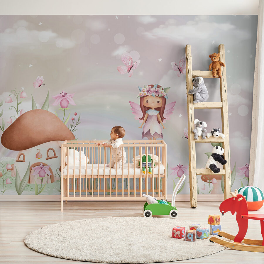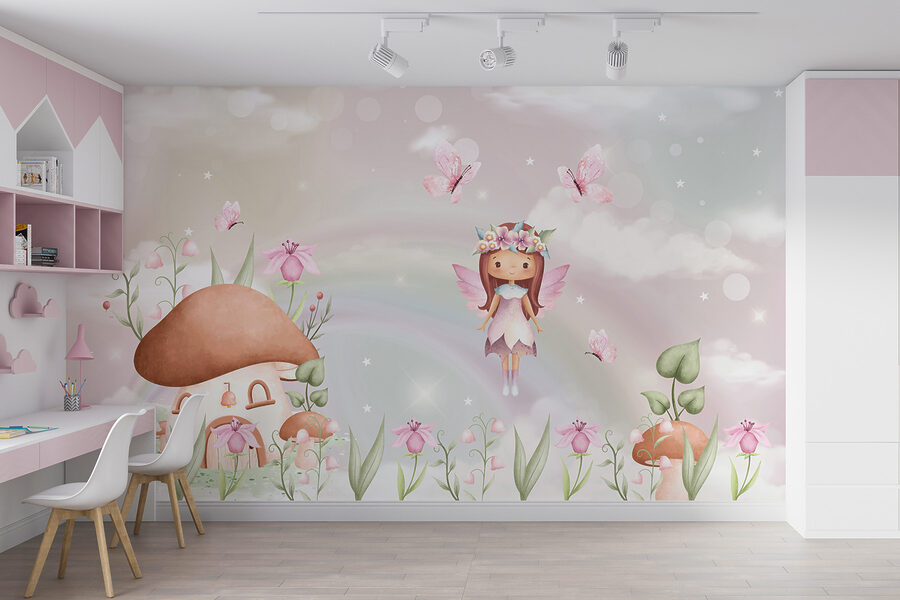 Transformați spațiul unui micuț cu această pictură murală încântătoare cu o zână fermecătoare care dansează printre flori și fluturi. Imaginați-vă: lumina soarelui care pătrunde, aruncând umbre moi pe petalele jucăușe și o căsuță confortabilă cu ciuperci care stârnește imaginația. Copiilor le va plăcea să se piardă în această scenă magică, visând povești cu zâne și aventuri în pădure. Este ca și cum ai aduce la viață un basm chiar pe perete – perfect pentru mințile curioase sau poate chiar pentru un colț de lectură confortabil. Cine nu ar zâmbi trecând pe lângă un asemenea capriciu? Lăsați magia să se desfășoare!