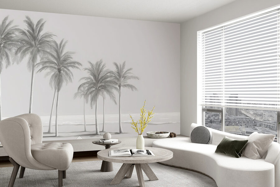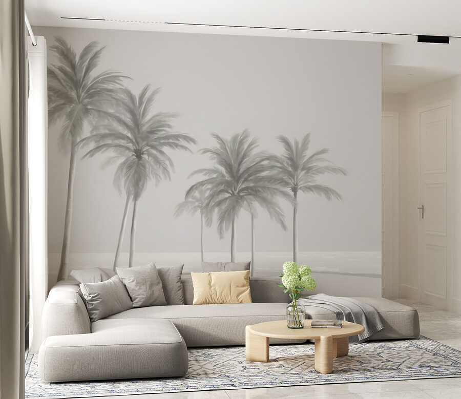 Această pictură murală prezintă o scenă cu mai mulți palmieri înalți și eleganți care se leagănă ușor ca și cum ar fi atinși de o briză de coastă. Culorile blânde și stinse fac ca imaginea să pară aproape de vis, un pic ca o fotografie de epocă care surprinde o zi calmă la malul mării. Se potrivește perfect cu orice decor – modern, boho, orice. În plus, este foarte reconfortantă; genul de priveliște care te face să expiri instantaneu.