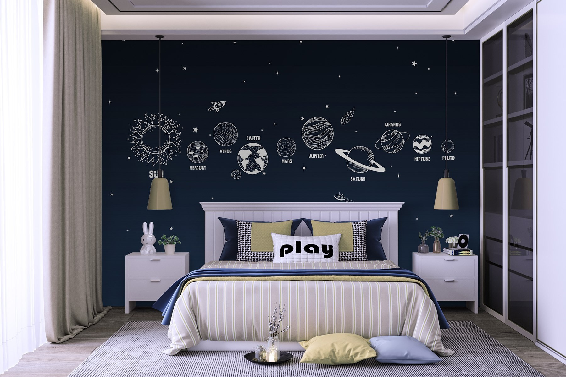 Imaginați-vă că oferiți peretelui dvs. un univers complet nou – la propriu! Această pictură murală “Desenul unui soare” emană farmec și uimire, fiind perfectă pentru spațiile care au nevoie de un strop de fler imaginativ. Copiii vor adora planetele care orbitează și soarele vesel, făcând poveștile de culcare sau joaca din această lume. Are combinația perfectă: vibrații educative pentru cei mici și atingerea potrivită de cool contemporan și pentru adulți. Perfect pentru camera unui copil sau chiar pentru un spațiu de locuit excentric. În plus, cine nu și-ar dori o galaxie chiar la el acasă? Este ca și cum ai avea o fereastră spre stele – dar fără nopțile reci din spațiu. O sursă de conversație, o sursă de confort și, sincer, doar distracție!
