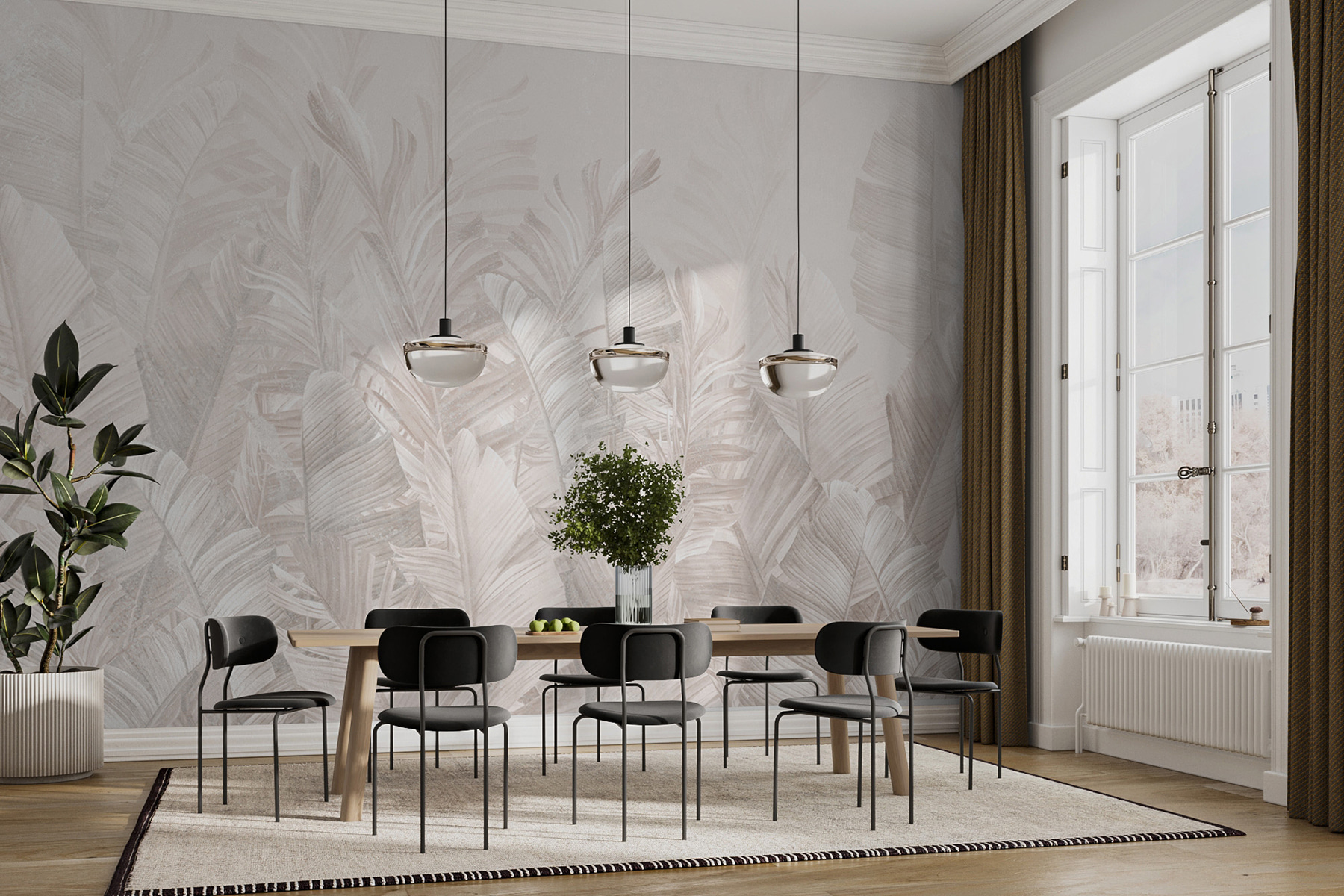 Aveți un perete mare gol în casa dvs.? Adăugați o notă de natură și calm cu această pictură murală “Model de frunze în tonuri sepia moi”. Imaginați-vă că vă treziți în fiecare dimineață în aceste tonuri moi și calde – este ca și cum ați aduce o briză tropicală blândă chiar în camera de zi sau în dormitor. Modelul complicat de frunze oferă spațiului dvs. o atingere subtilă, dar captivantă, a tropicelor. Este perfect pentru atunci când doriți să vă simțiți puțin mai zen sau aveți nevoie de o pauză de la agitație. În plus, tonurile sepia sunt versatile – se vor potrivi cu aproape orice decor. Este ca și cum ai avea o bucățică dintr-o escapadă tropicală relaxantă, fără să ieși din casă.