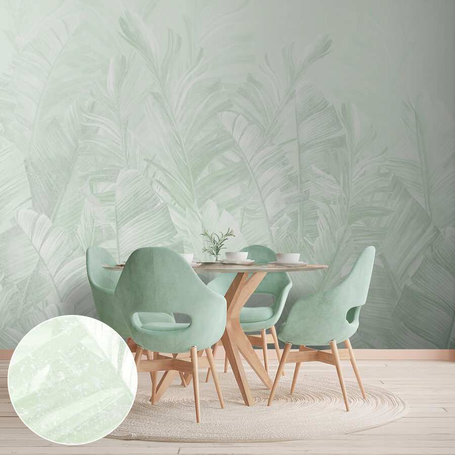 Iată o pictură murală care va insufla aer proaspăt, mentolat în spațiul dvs.! Acest design “Mint Leaves Pattern” este ca o șoaptă blândă a tropicelor. Imaginați-vă că vă treziți în fiecare dimineață și vă simțiți ca într-o junglă luxuriantă și liniștitoare. Tonurile blânde de mentă sunt ușoare pentru ochi, perfecte pentru relaxare după o zi agitată.
