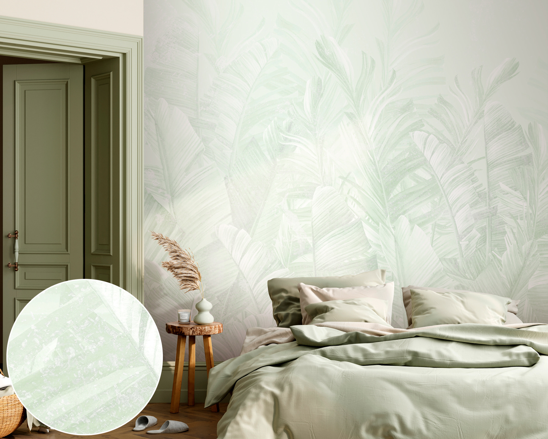 Iată o pictură murală care va insufla aer proaspăt, mentolat în spațiul dvs.! Acest design “Mint Leaves Pattern” este ca o șoaptă blândă a tropicelor. Imaginați-vă că vă treziți în fiecare dimineață și vă simțiți ca într-o junglă luxuriantă și liniștitoare. Tonurile blânde de mentă sunt ușoare pentru ochi, perfecte pentru relaxare după o zi agitată.