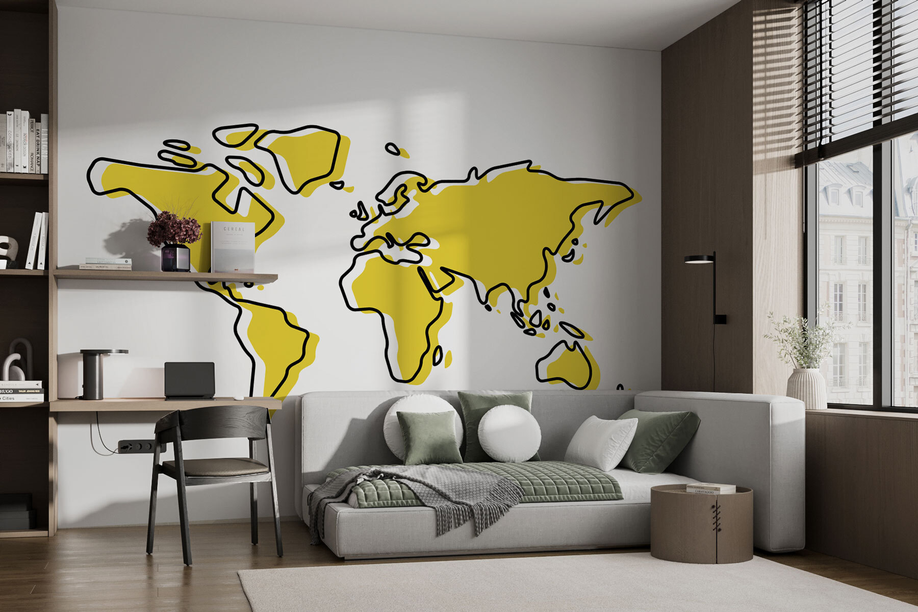 Se simte ca un strop de distracție plus un dram de educație, nu-i așa? Perfect pentru a stârni curiozitatea în mințile tinere. Și hei, ar putea inspira chiar și teste spontane de geografie – cine ar fi crezut că învățarea poate fi atât de elegantă? Fie că decorați camera unui copil, fie că adăugați un pic de farmec spațiului de locuit, această pictură murală este perfectă pentru inițierea unei conversații.