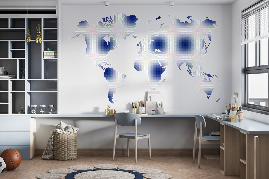 Vă gândiți să vă modernizați spațiul? Ei bine, aruncați o privire aici – o pictură murală stelară numită “Harta lumii”. Este ca o abordare artistică și elegantă a hărții tipice, cu o grămadă de puncte mici care creează continentele. Această frumusețe se află în categoriile “Harta Pământului” și “Picturi murale populare” și este ușor de înțeles de ce. Imaginați-vă-o întinzându-se pe peretele sufrageriei dvs. – cu siguranță o sursă de conversație! Imaginați-vă oaspeți care se minunează de vibrația dvs. globală, plănuindu-și cu ușurință următoarea aventură. În plus, există ceva ciudat de satisfăcător în a vedea lumea expusă astfel. Adăugați această pictură murală spațiului dvs.? Este ca și cum ai invita întreaga lume în casa ta.