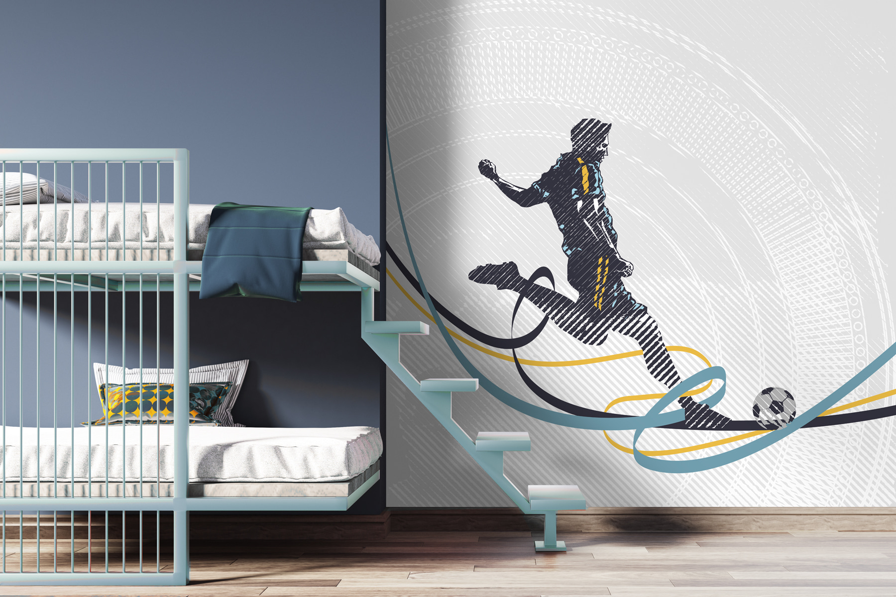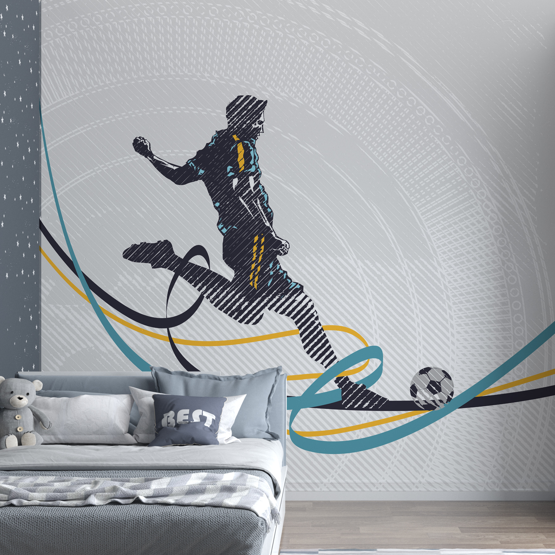 Amestecul de linii abstracte și culori vibrante îi conferă o atmosferă rece și modernă, care este totuși caldă și primitoare. Este ca și cum ai captura pentru totdeauna un moment sportiv perfect. Și, hei, nu trebuie să vă faceți griji cu privire la scor în jocul dvs. de decorare – acest mural vă va pune cu siguranță în frunte! Stropi de culoare fac totul să iasă în evidență. Perfect pentru orice fan al fotbalului sau pentru cineva care iubește doar o fotografie de acțiune bună.