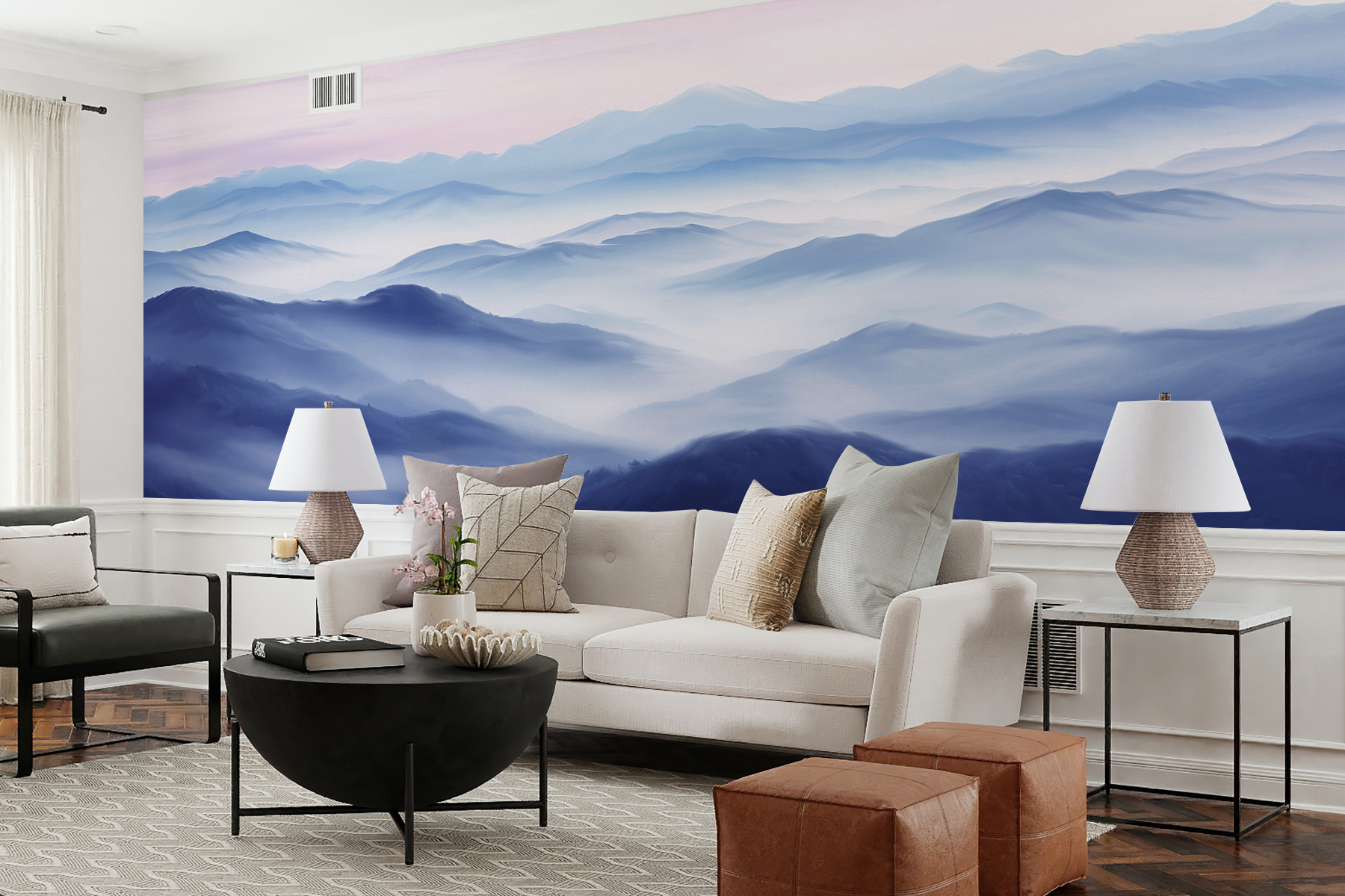 Imaginați-vă că transformați o cameră într-o evadare liniștită cu această uimitoare pictură murală “Peisaj de munți cu ceață”. Este ca și cum ați privi un orizont nesfârșit în care vârfurile moi și cețoase se topesc unele în altele. Dacă seninătatea ar avea o operă de artă, aceasta ar fi ea. Perfectă pentru zilele în care vreți să simțiți calmul munților fără să faceți drumeții. Nu ar fi de vis să vă sorbiți cafeaua de dimineață în timp ce vă pierdeți în aceste straturi de albastru? De asemenea, este un starter de conversație. Prietenii tăi vor spune: “De unde ai luat asta?” Iar tu doar vei zâmbi.
