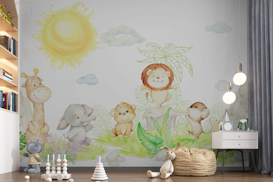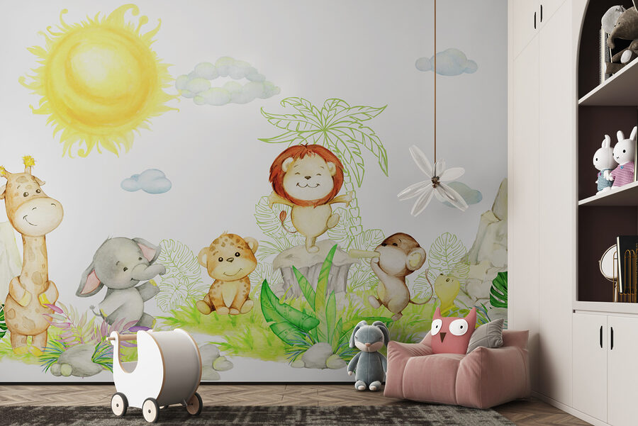 Părinții o adoră pentru că este jucăușă fără a fi copleșitoare. Culorile liniștitoare și fețele fericite creează o atmosferă liniștitoare, dar distractivă. Imaginați-vă povești înainte de culcare sub această pictură murală – este ca și cum ați citi într-o junglă magică. Țestoasa care trage cu ochiul și puiul de leu vor stârni cu siguranță nenumărate aventuri în timpul jocului! Un element instantaneu de îmbunătățire a dispoziției pentru orice cameră de copii sau de joacă, care îi va face pe copii și pe adulți să zâmbească de fiecare dată când intră în cameră.
