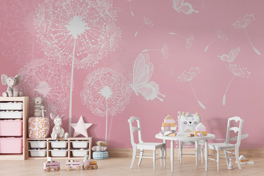 Uitați-vă la această pictură murală de vis cu flori albe pe un fundal roz! Este ca o gură de aer proaspăt – perfectă pentru a adăuga o notă de fantezie în orice cameră. Imaginați-vă că intrați în spațiul dvs. și vă simțiți instantaneu înălțați de păpădiile albe, moi și delicate, care plutesc grațios pe un roz pastel minunat. Este în același timp liniștitor și reconfortant, ca și cum ai vedea o grădină de primăvară înflorind chiar în interior. Ideală pentru sufragerii confortabile, dormitoare senine sau chiar creșe jucăușe – această pictură murală aduce un strop din farmecul naturii, transformând pereții simpli în pânze fermecătoare. Și acei fluturi? Absolut magici! Cu siguranță vor face pe oricine să zâmbească, adăugând un pic de magie de basm în viața de zi cu zi. În plus, este suficient de versatil pentru a completa diferite stiluri de decor, de la minimalist la vintage chic. Așadar, imaginați-vă o retragere liniștită în propria casă, având ca fundal această pictură murală încântătoare.