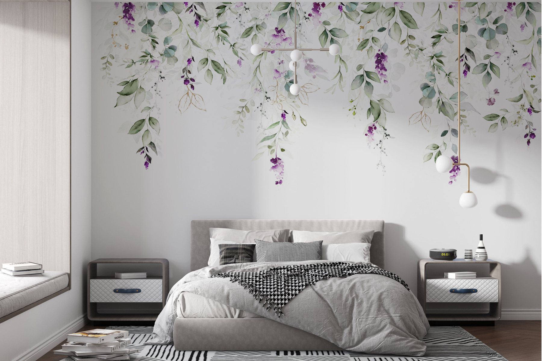 Doriți să vă înveseliți spațiul cu o notă de natură? Aruncați o privire la această pictură murală încântătoare cu flori mov pe un fundal alb imaculat. Are această vibrație moale, de acuarelă, care vă face să vă simțiți ca și cum ați sta într-o grădină liniștită. Imaginați-vă că vă treziți în fiecare zi cu această imagine încântătoare – o îmbunătățire totală a dispoziției, nu-i așa? Nuanțele de violet sunt suficient de puternice pentru a atrage privirea, fără a fi copleșitoare. Perfectă pentru orice cameră care are nevoie de puțină viață și culoare, această pictură murală se potrivește de minune cu tot felul de decoruri. Este ideală pentru a adăuga o notă blândă, botanică, casei tale. Pur și simplu de vis!