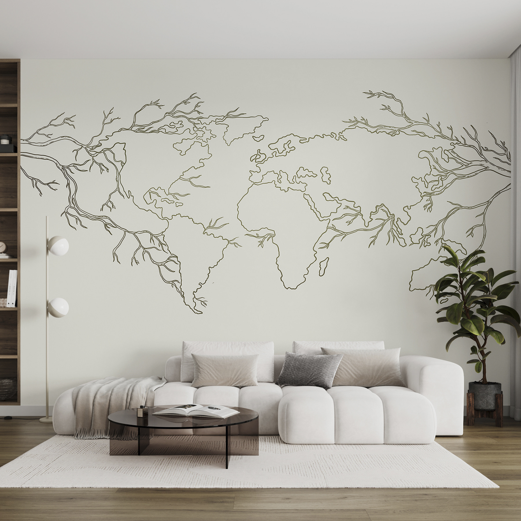 “Fototapet Map of the World” nu este un tapet obișnuit. Imaginați-vă că dați camerei dvs. o notă de dorință de călătorie cu acest design unic cu ramuri delicate care formează continentele. Perfect pentru camera unui copil sau pentru colțișorul dvs. special, este ca și cum ați avea o mică aventură pe perete – fără jet lag.