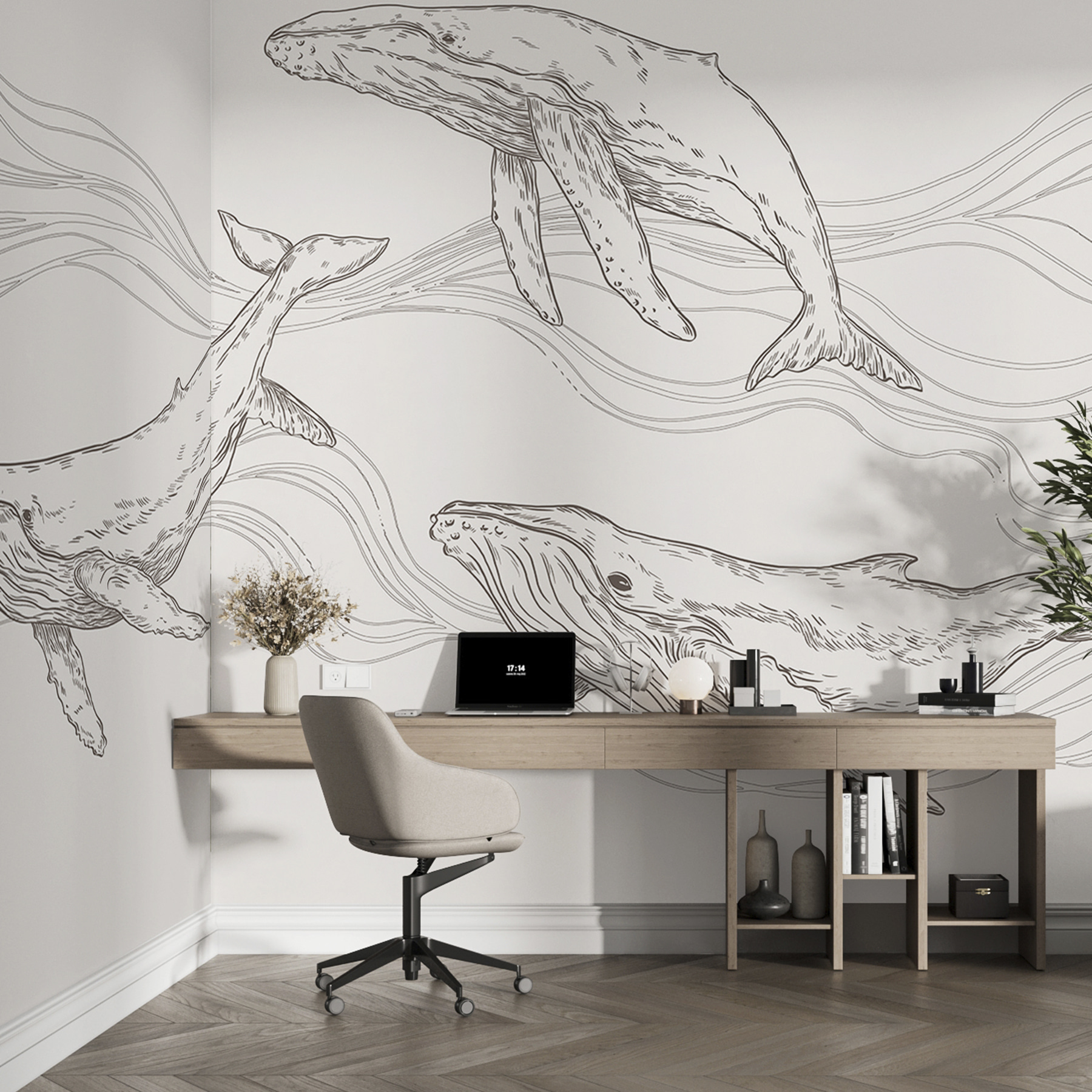 Imaginați-vă că vă treziți în fiecare zi într-o cameră care se simte ca un paradis submarin liniștit. Această pictură murală “Balenă și balenă cu cocoașă” aduce grația senină a oceanului chiar în casa dvs. Perfectă pentru iubitorii de animale, pasionații de ocean sau pentru oricine dorește un strop de fantezie și uimire pe pereții lor. Desenele detaliate ale acestor creaturi maiestuoase par să danseze, aproape ca și cum v-ar invita în baletul lor subacvatic. Ca să nu mai vorbim de faptul că este o sursă sigură de conversație – toată lumea va fi uimită de cât de incredibil arată. Gândiți-vă la asta – un pic din vibrațiile pașnice de pe malul mării, fără ca nisipul să ajungă peste tot!