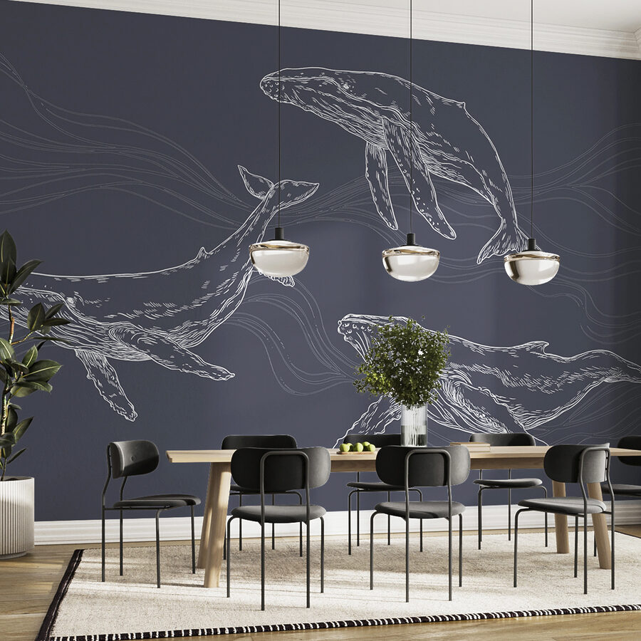 Imaginați-vă că intrați într-o cameră și sunteți întâmpinați de un grup maiestuos de balene, care înoată grațios pe perete. Exact aceasta este vibrația pe care o aduce această pictură murală – liniștitoare, dar și puțin aventuroasă. Ideal pentru orice spațiu care are nevoie de un pic din magia oceanului. Vedeți voi, balenele nu doar înoată, ele alunecă. Această pictură murală surprinde această eleganță, făcând pereții dvs. să prindă viață. Perfect pentru o cameră cu tematică de plajă sau doar pentru a adăuga o notă de litoral acolo unde vă așteptați mai puțin. În plus, aceste linii blânde și valuri… fericire artistică pură! Scufundați-vă și lăsați aceste creaturi minunate să vă transforme spațiul într-un paradis subacvatic.