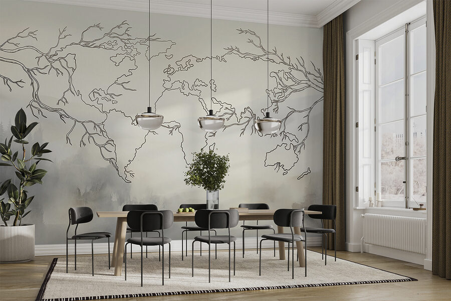 Aruncați o privire la această “hartă a lumii” murală. Nu este doar o hartă oarecare – imaginați-vă ramuri subțiri și elegante care se întind pe pereți, formând lumea chiar în sufrageria dumneavoastră. Este ca și cum ai avea o operă de artă care te atrage de fiecare dată când te uiți peste ea. În plus, adaugă o notă de hoinăreală oricărui spațiu, făcându-l să pară deschis și aventuros. Perfect pentru camera de zi, birou sau chiar pentru un colț de lectură confortabil. Imaginați-vă trasând cărări către locurile în care ați fost sau visând cu ochii deschiși la ținuturi îndepărtate. Este mai mult decât o hartă – este o evadare zilnică, chiar acolo pe peretele tău!