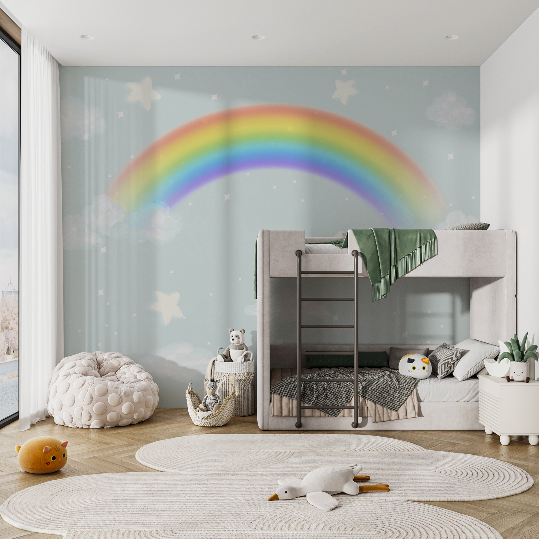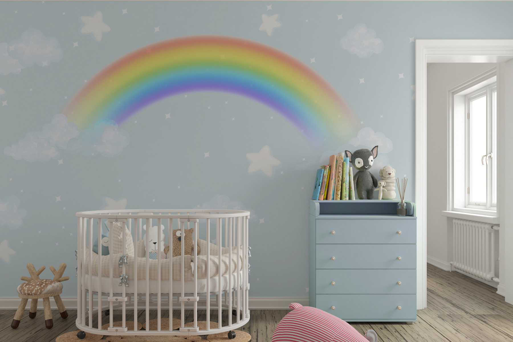 Vă prezentăm pictura murală “White Star on a Blue Background” – perfectă pentru a transforma orice spațiu într-un vis de zi capricios. Imaginați-vă reacția micuțului dvs. atunci când vede această pictură murală acoperind un perete întreg. Este ca și cum ai păși direct într-un basm, înconjurat de nori albi pufoși și acele stele adorabile care par să sclipească noaptea. Ideală pentru camera sau camera copilului, este ca o felie de cer pictată doar pentru ei!