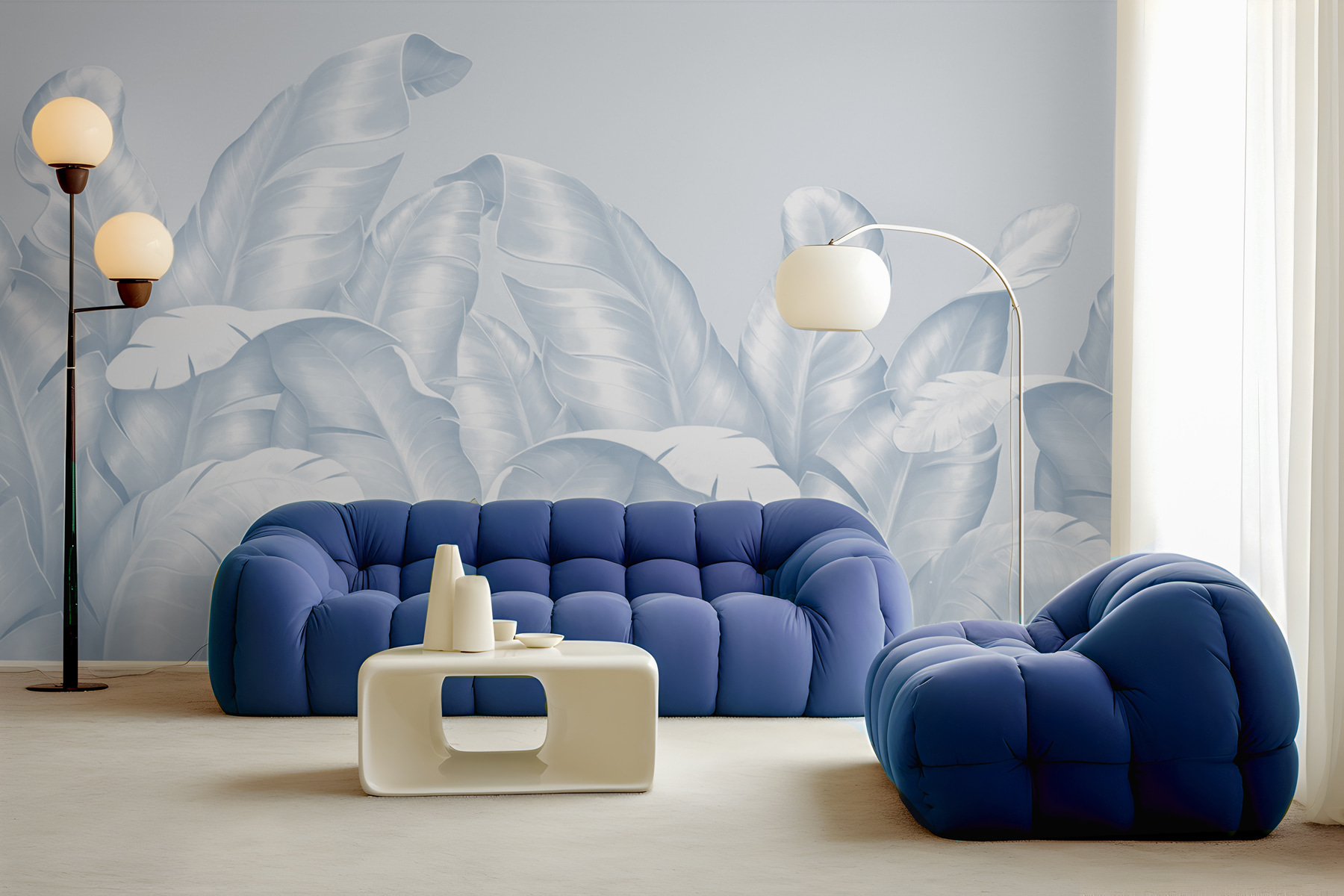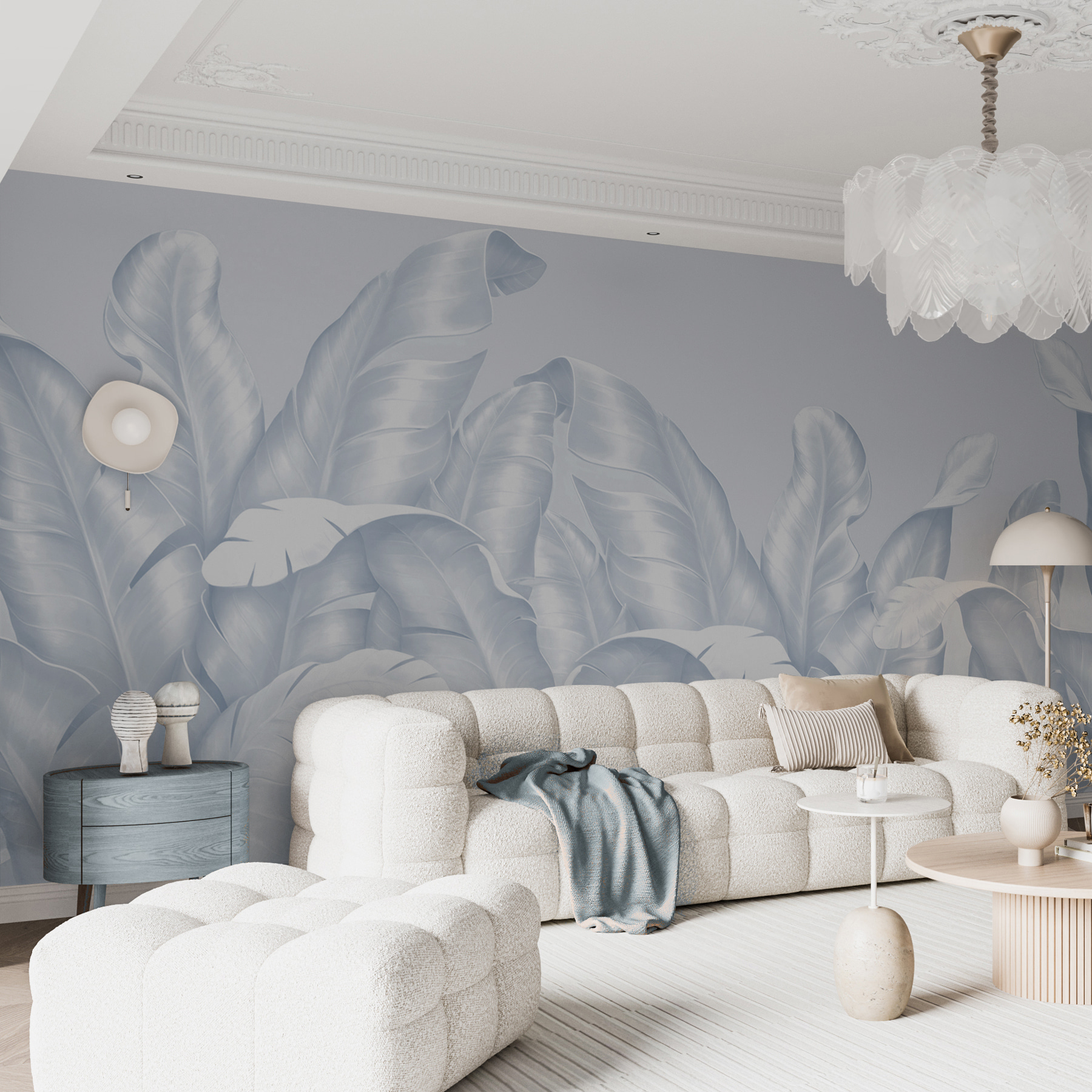 Transformați orice cameră cu aceste picturi murale de vis care prezintă curbe blânde și frunze curgătoare. Este ca și cum ai invita o oază tropicală chiar în spațiul tău de locuit! Imaginați-vă acest lucru: o seară confortabilă, lumină blândă și aceste frunze eterice uimitoare care vă înconjoară – este fundalul perfect pentru relaxare sau pentru primirea prietenilor. Designul subtil emană o vibrație senină, facilitând relaxarea. În plus, se potrivește de minune atât cu decorul modern, cât și cu cel clasic, lăsându-i pe toți uimiți. Este timpul să oferiți pereților o schimbare de look răcoritoare!