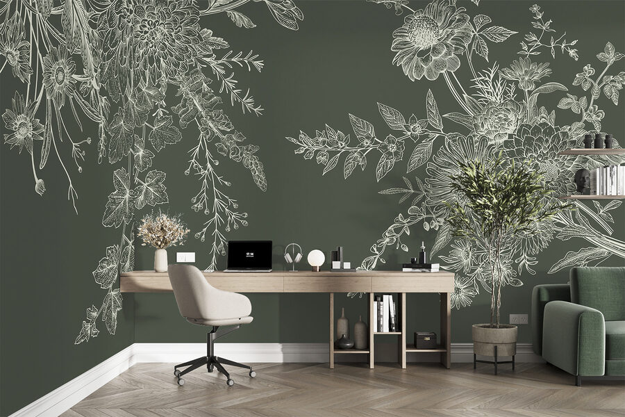 Transformați un perete simplu într-o capodoperă botanică cu acest mural floral elegant. Imaginați-vă schițe complicate de flori dansând pe un fundal profund, bogat – este ca și cum ați aduce o grădină înăuntru fără a fi nevoie să udați nimic! Imaginați-vă că vă treziți într-o cameră care se simte ca o oază creativă, stârnind inspirație și calm în același timp. Este perfect pentru un colț de lectură confortabil sau pentru un birou elegant. Prietenii se vor minuna de gusturile tale unice. În plus, cine poate rezista acestor detalii capricioase? Nu este doar decor; este o experiență care șoptește secretele naturii de fiecare dată când aruncați o privire.