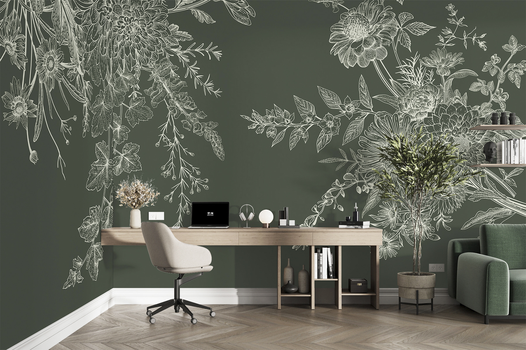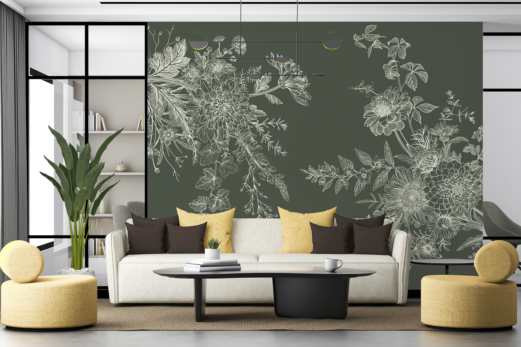 Transformați un perete simplu într-o capodoperă botanică cu acest mural floral elegant. Imaginați-vă schițe complicate de flori dansând pe un fundal profund, bogat – este ca și cum ați aduce o grădină înăuntru fără a fi nevoie să udați nimic! Imaginați-vă că vă treziți într-o cameră care se simte ca o oază creativă, stârnind inspirație și calm în același timp. Este perfect pentru un colț de lectură confortabil sau pentru un birou elegant. Prietenii se vor minuna de gusturile tale unice. În plus, cine poate rezista acestor detalii capricioase? Nu este doar decor; este o experiență care șoptește secretele naturii de fiecare dată când aruncați o privire.