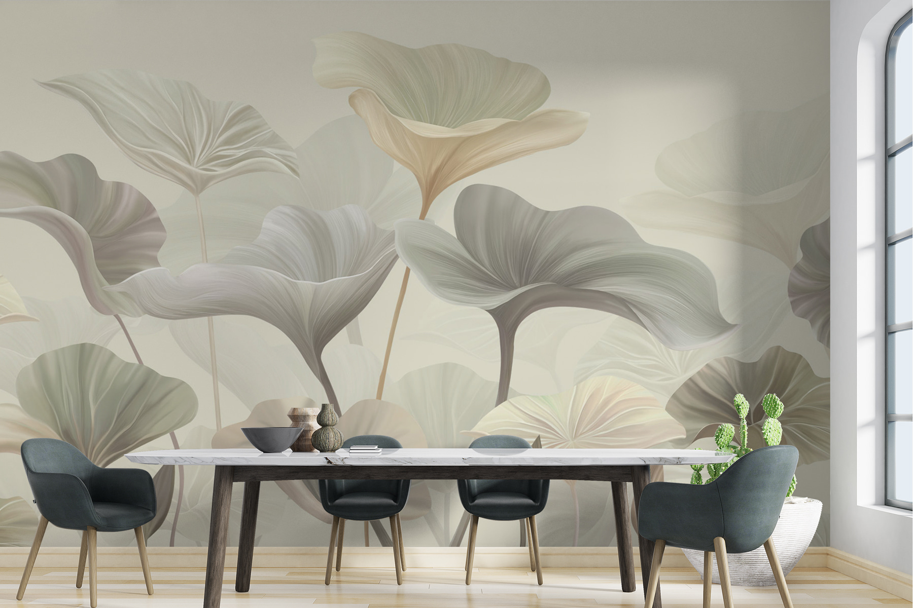 Imaginați-vă că pășiți într-o grădină senină de fiecare dată când intrați într-o cameră. Exact asta veți obține cu pictura murală “Gentle Waves of Delicate Foliage”. Aceste frunze moi, de vis, în tonuri discrete? Relaxare pură pentru ochii și sufletul tău. Gândiți-vă că aduceți o bucată din paradisul tropical în casă, fără costul biletului de avion.