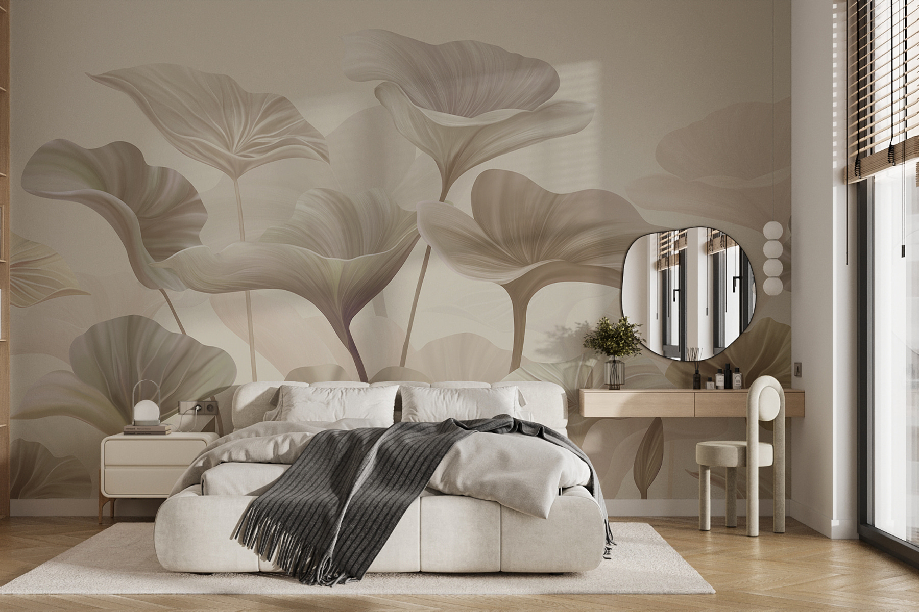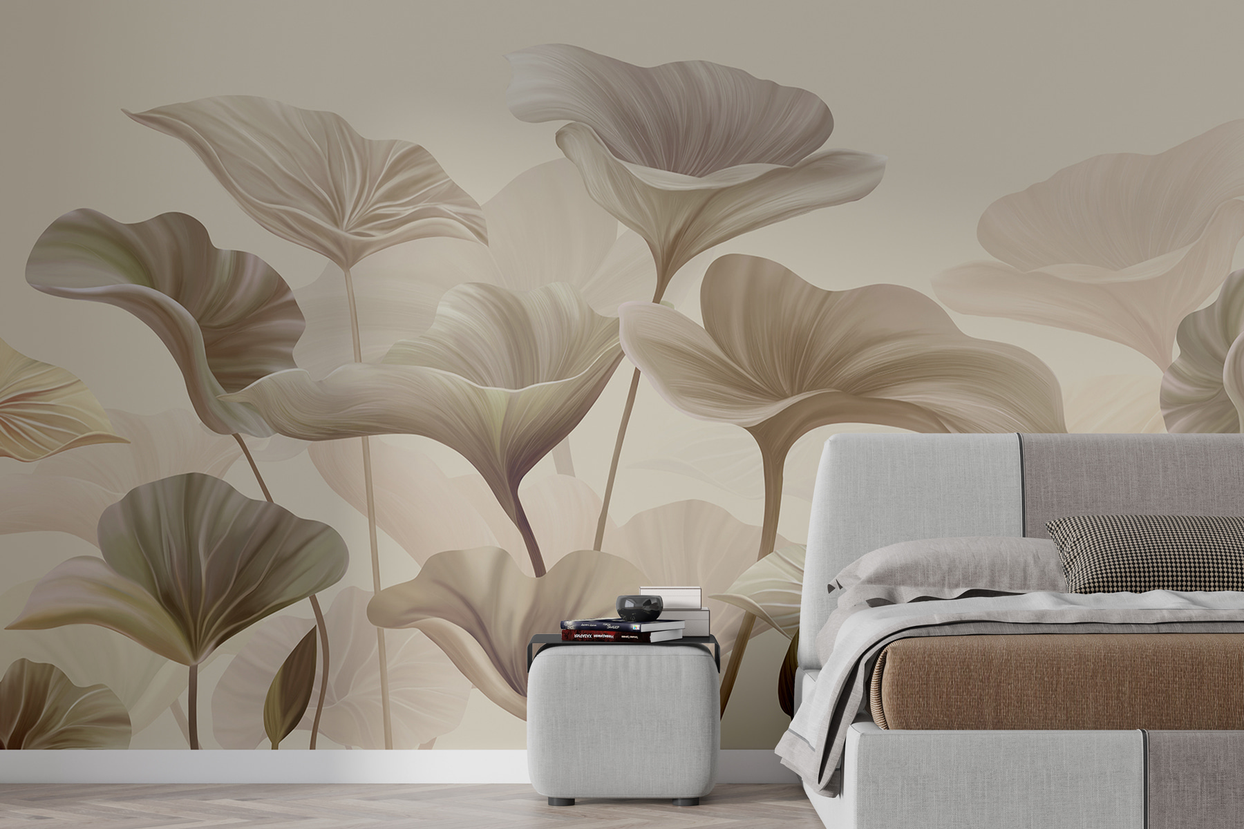Deci, sunteți în căutarea picturii murale perfecte? Salutați această piesă florală abstractă cu nuanțe moi. Imaginați-vă camera dvs. preferată transformându-se instantaneu într-o oază liniștită, de vis, doar prin adăugarea acestor tonuri liniștitoare și a acestor desene florale elegante. Simțiți că pășiți într-o pajiște blândă chiar în casa dvs. Aceste nuanțe delicate și linii fluide dansează împreună, creând un sentiment de calm și căldură. Are acest farmec discret care nu strigă după atenție, ci mai degrabă șoptește o invitație senină la relaxare. Perfect pentru toți cei care doresc ca spațiul lor să fie confortabil în mod natural, cu un plus de eleganță. Imaginați-vă o dimineață liniștită de duminică, lumina soarelui pătrunzând ușor și sentimentul de mulțumire pură în timp ce vă sorbiți cafeaua înconjurat de această artă frumoasă. Caldă, primitoare și puțin încântătoare – această pictură murală va da oricărei încăperi o notă artistică delicată. Destul de cool, nu-i așa?